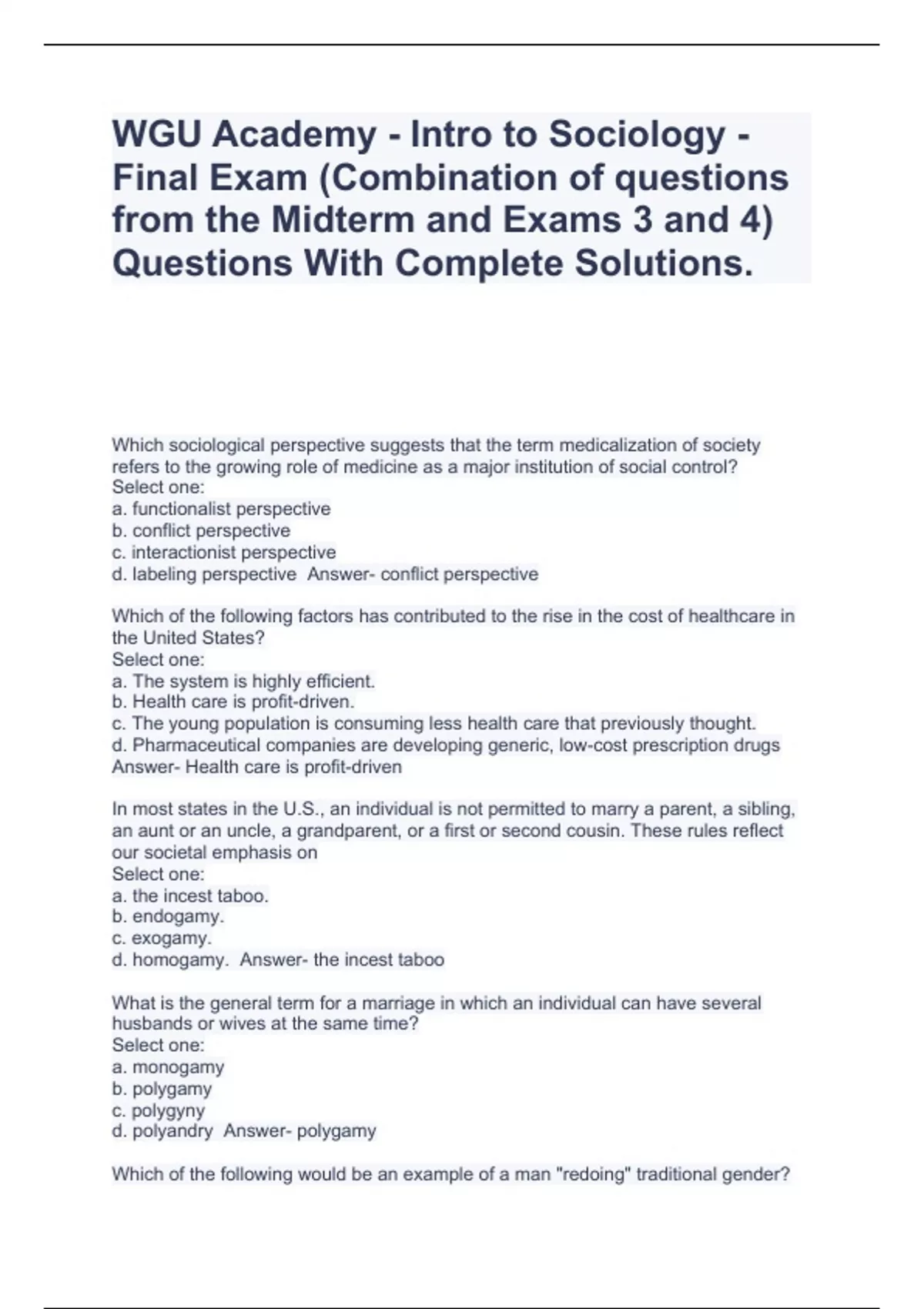 WGU Academy - Intro to Sociology - Final Exam (Combination of questions from the Midterm and Exams 3 and 4) Questions With Complete Solutions.