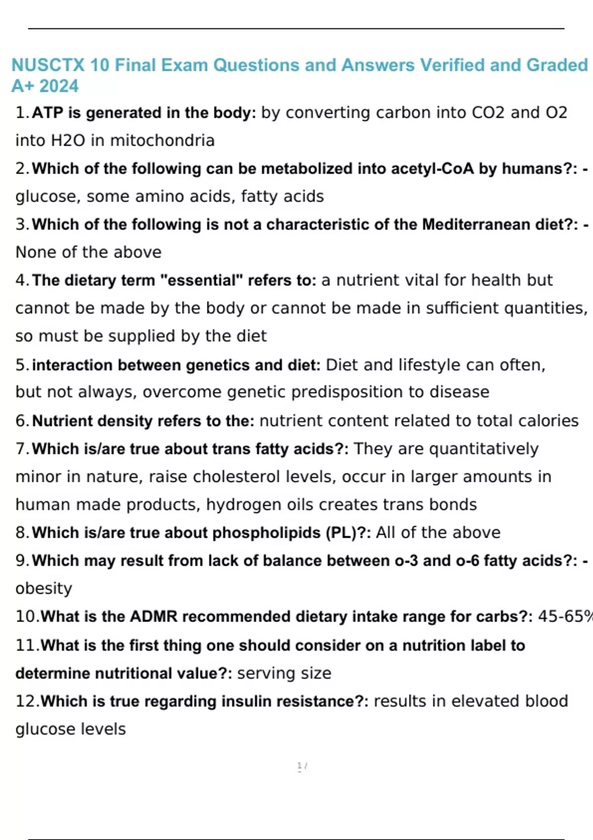 NUSCTX 10 Final Exam Questions and Answers Verified and Graded A+ 2024 NUSCTX 10 Final Exam Questions and Answers Verified and Graded A+ 2024 NUSCTX 10 Final Exam Questions and Answers Verified and Graded A+ 2024 NUSCTX 10 Final Exam Questions and Answers Verified and Graded A+ 2024 NUSCTX 10 Final Exam Questions and Answers Verified and Graded A+ 2024 NUSCTX 10 Final Exam Questions and Answers Verified and Graded A+ 2024