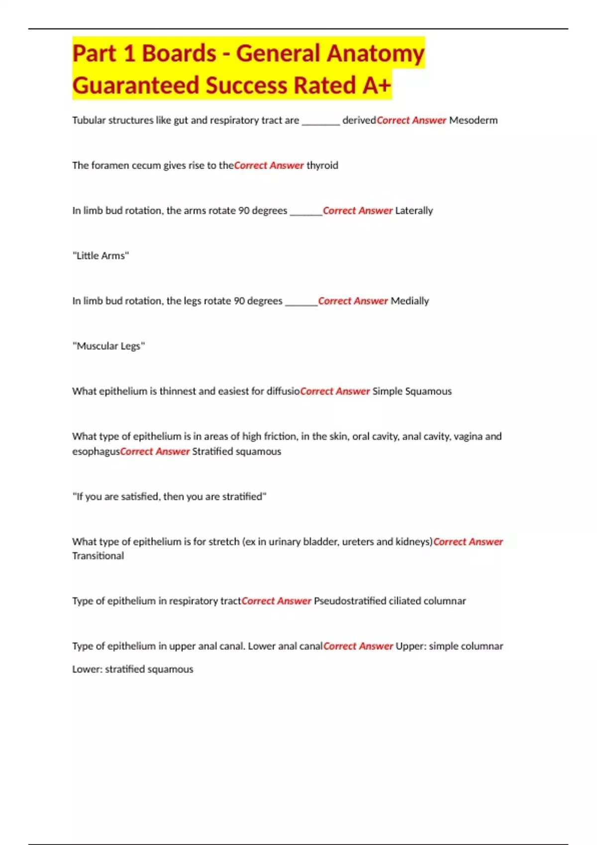 Part 1 Boards - General Anatomy Guaranteed Success Rated A+