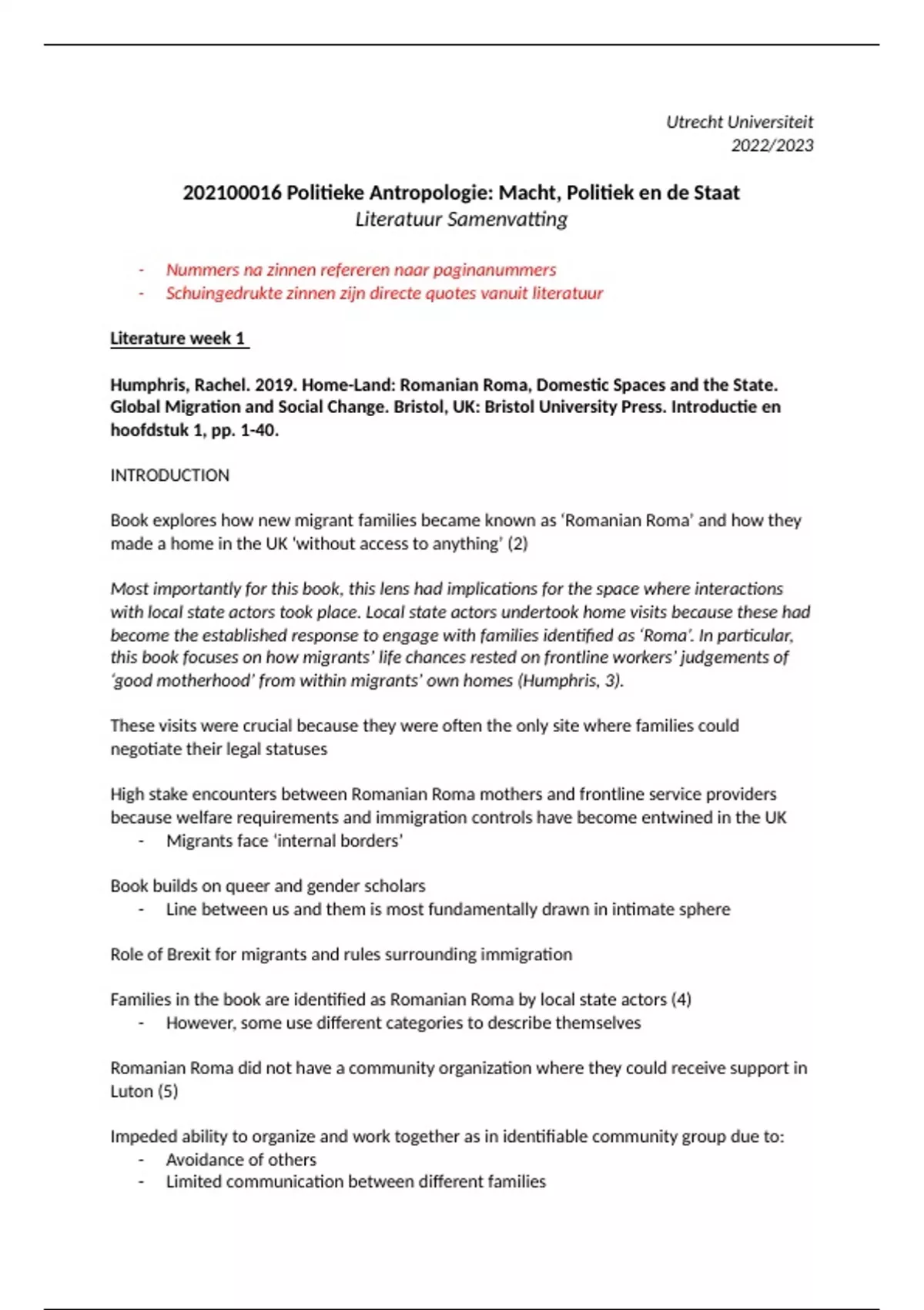 202100016 Politieke Antropologie: Macht, Politiek en de Staat