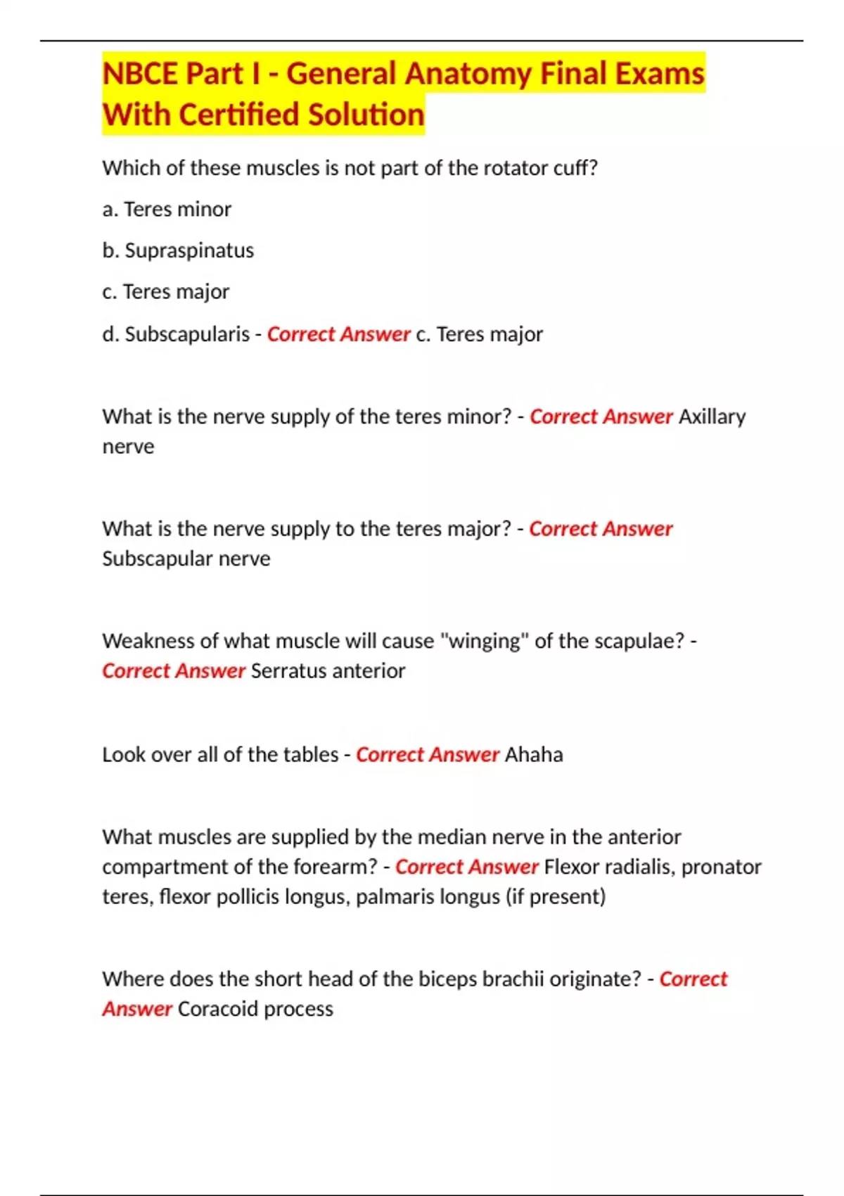 NBCE Part I - General Anatomy Final Exams With Certified Solution