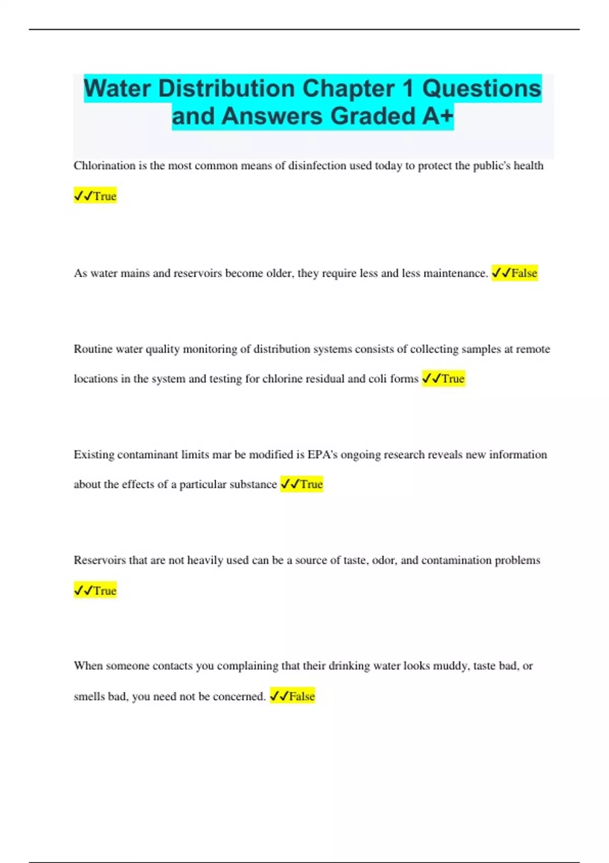 Water Distribution Chapter 1 Questions and Answers Graded A+