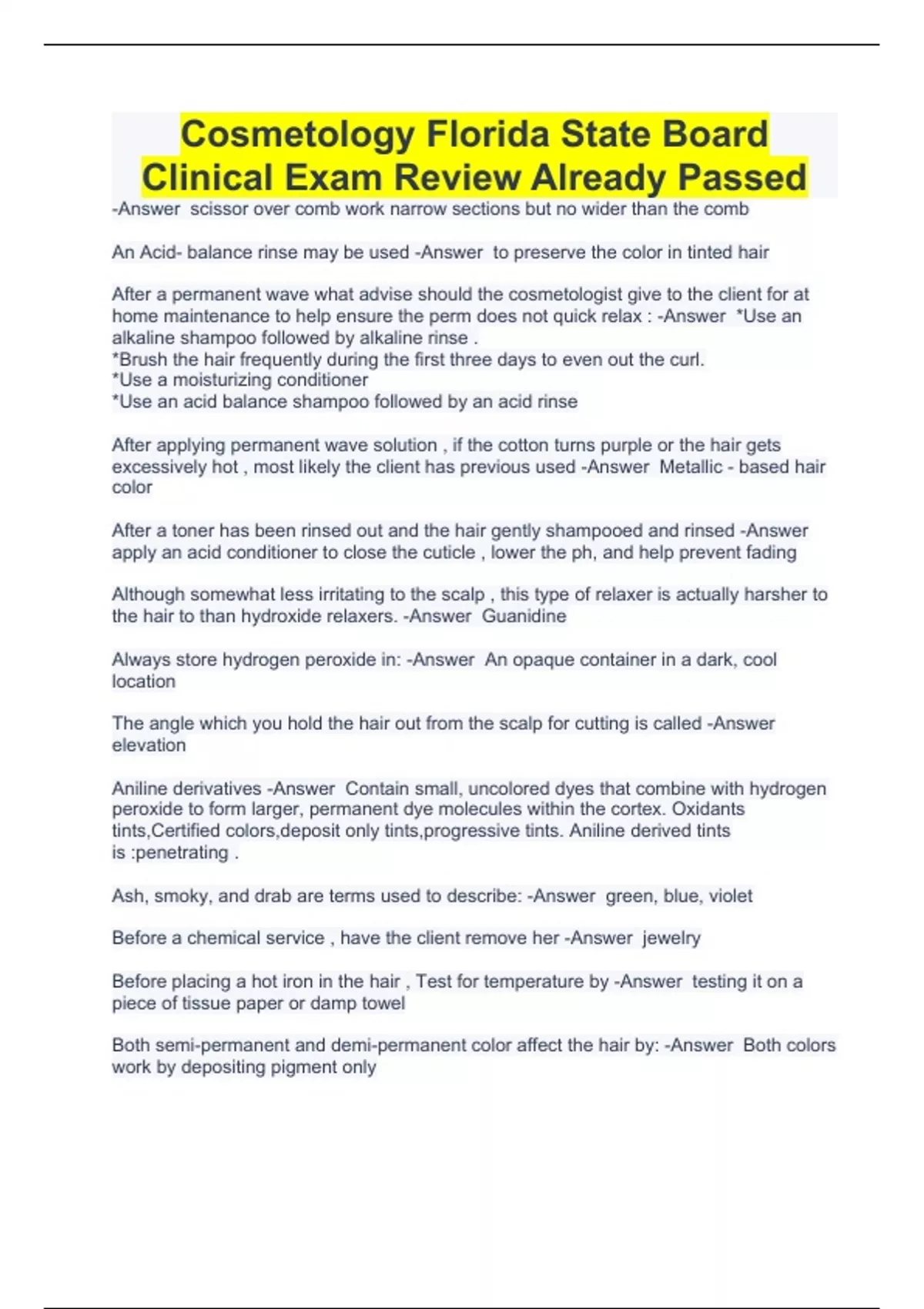 Cosmetology Florida State Board Clinical Exam Review Already Passed