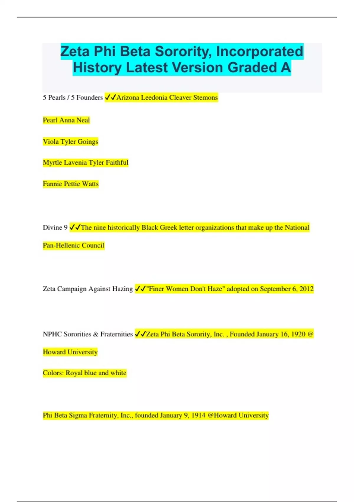 Zeta Phi Beta Sorority, Incorporated History Latest Version Graded A