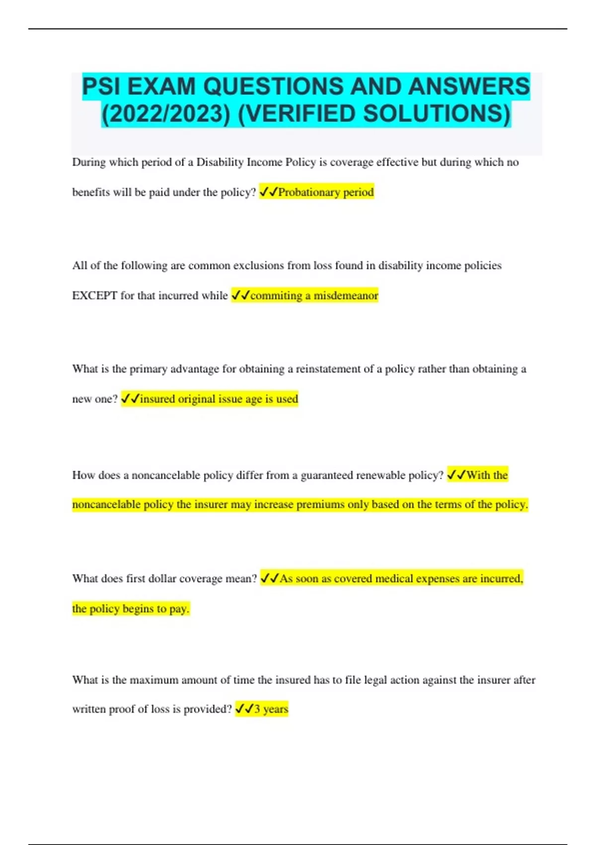 PSI EXAM QUESTIONS AND ANSWERS (2022/2023) (VERIFIED SOLUTIONS)