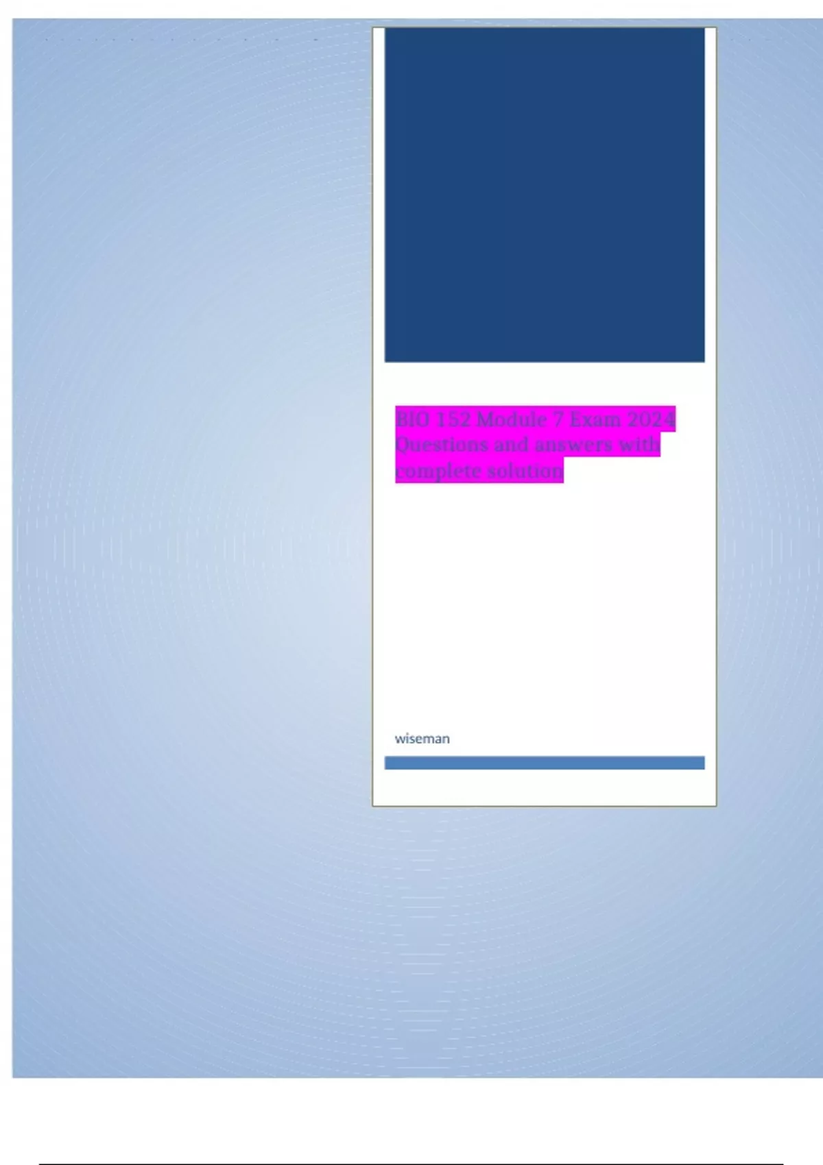 BIO 152 Module 7 Exam 2024 Questions and answers with complete solution