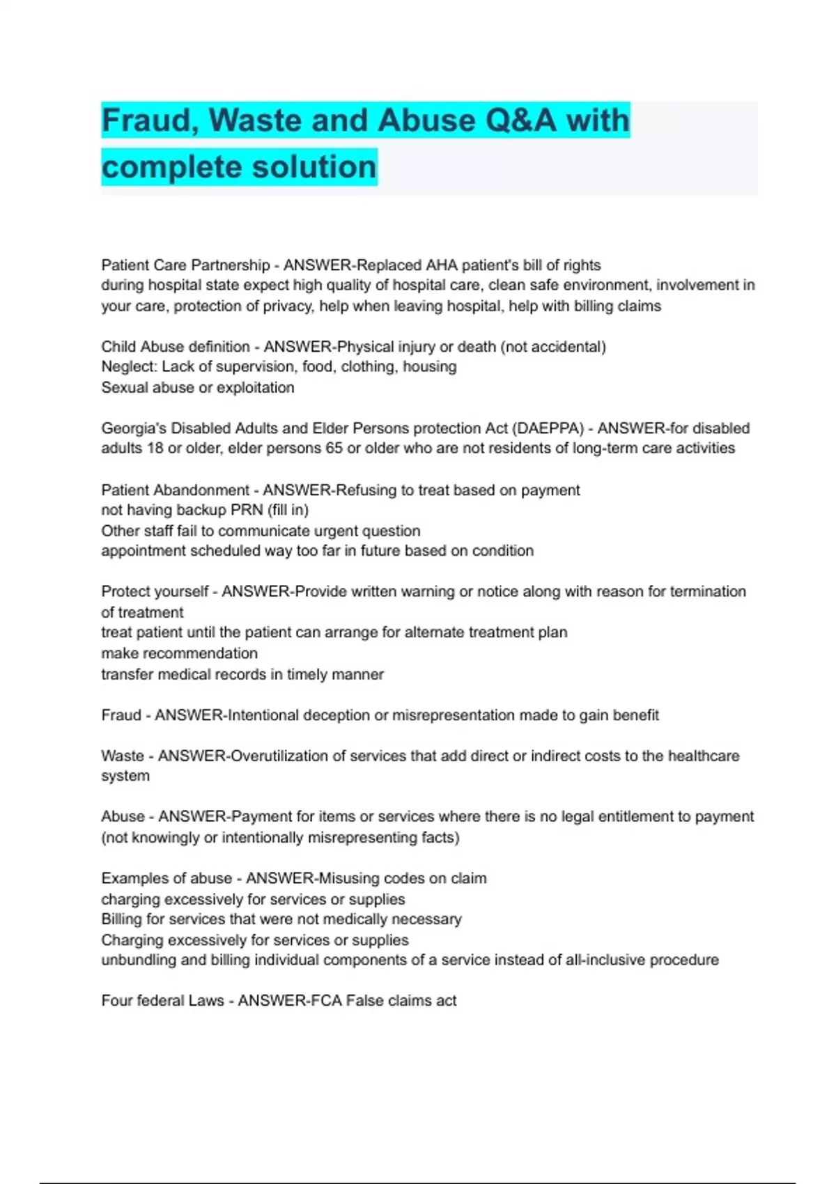 Fraud, Waste and Abuse Q&A with complete solution