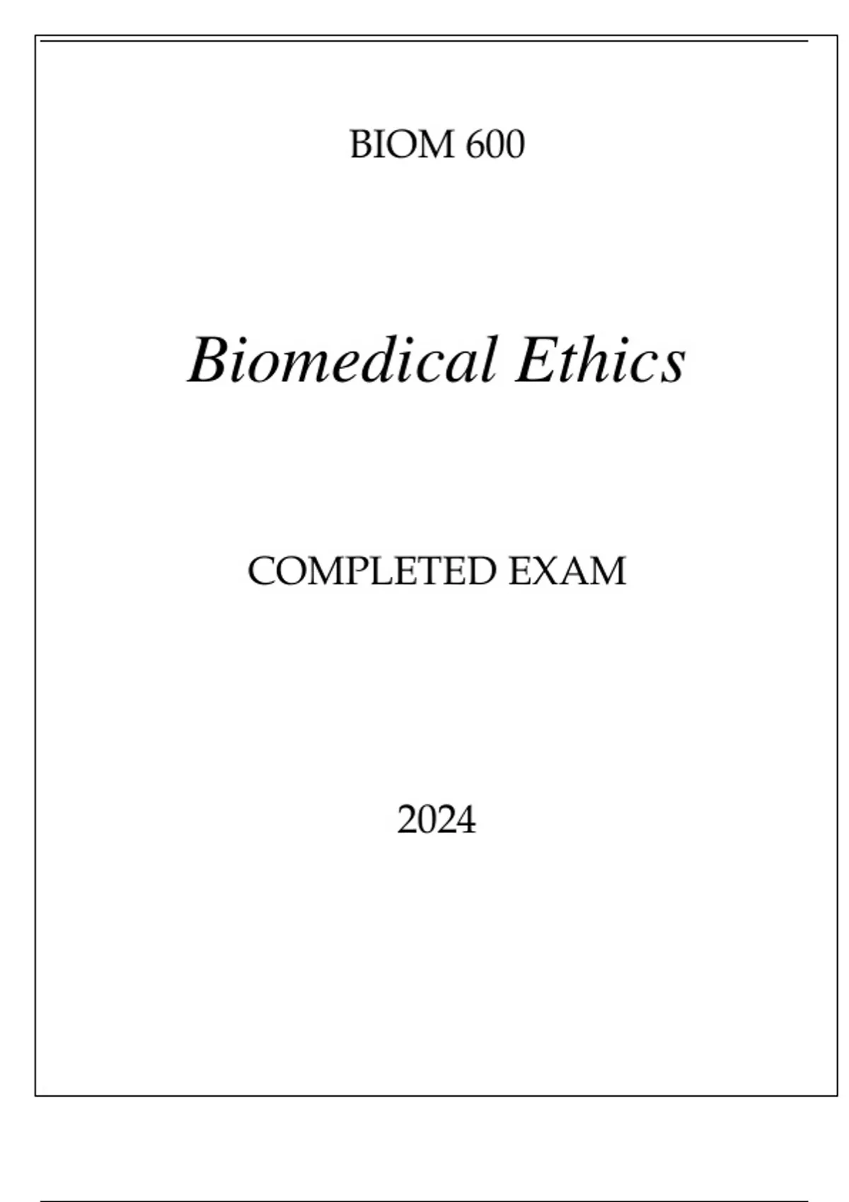 BIOM 600 BIOMEDICAL ETHICS COMPLETED EXAM 2024.