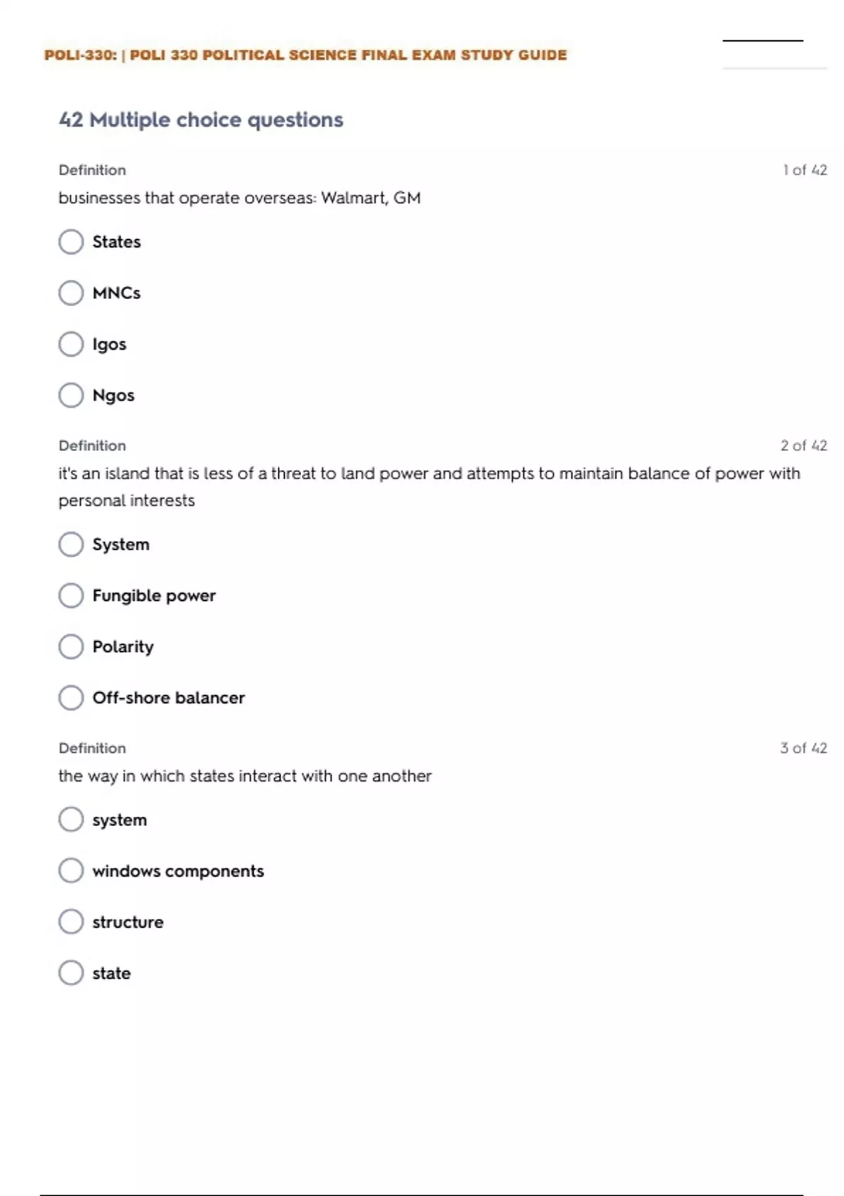 POLI-330: | POLI 330 POLITICAL SCIENCE EXAM 1 STUDY GUIDE QUESTIONS WITH ANSWERS| GRADED A+