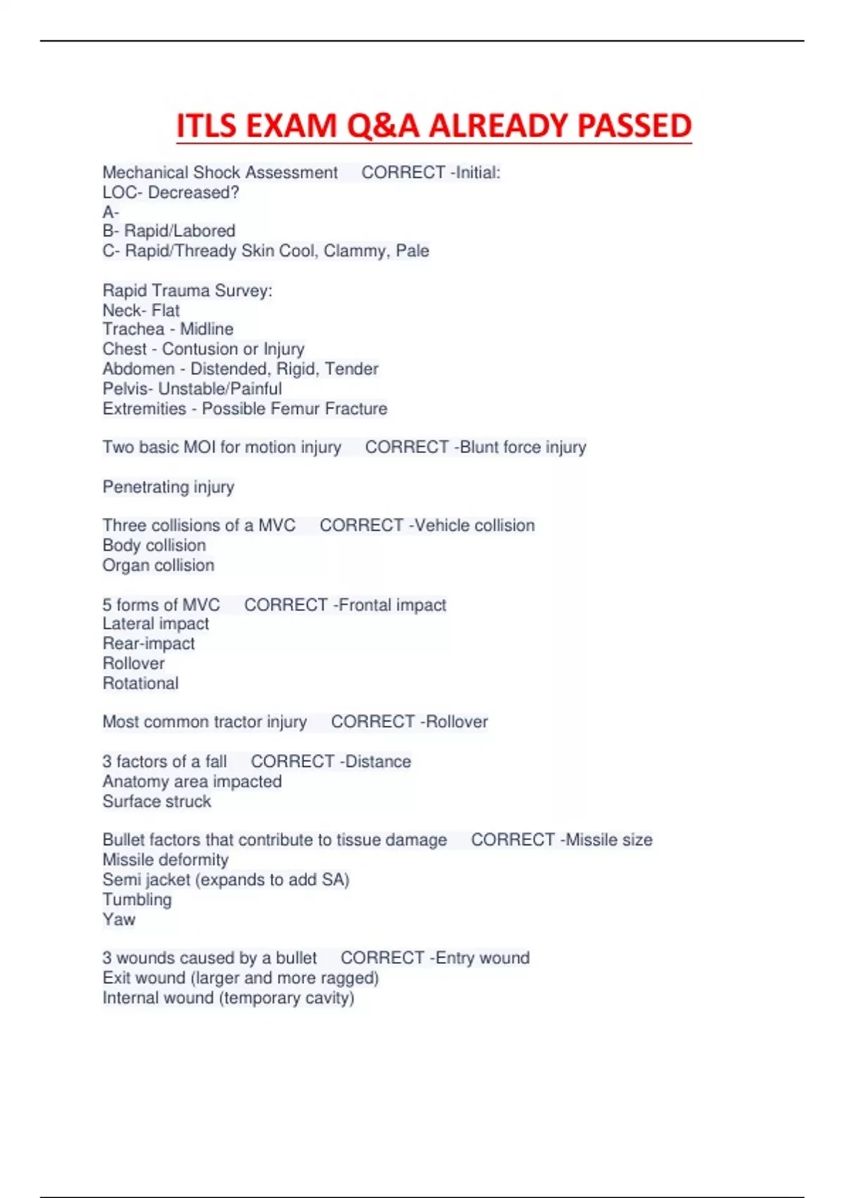 ITLS EXAM Q&A ALREADY PASSED,A+ GRADED.
