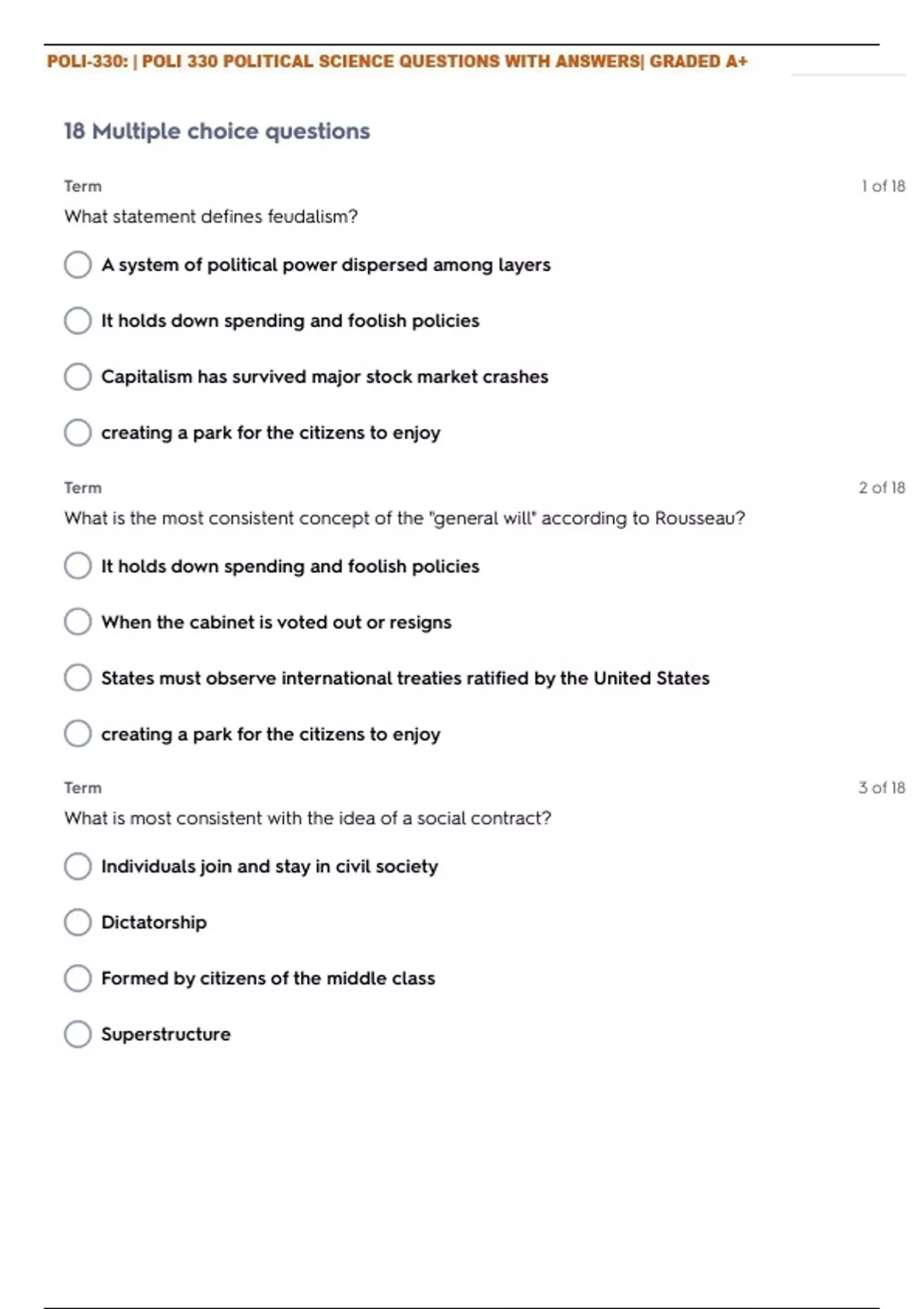 POLI-330: | POLI 330 POLITICAL SCIENCE QUESTIONS WITH ANSWERS| GRADED A+