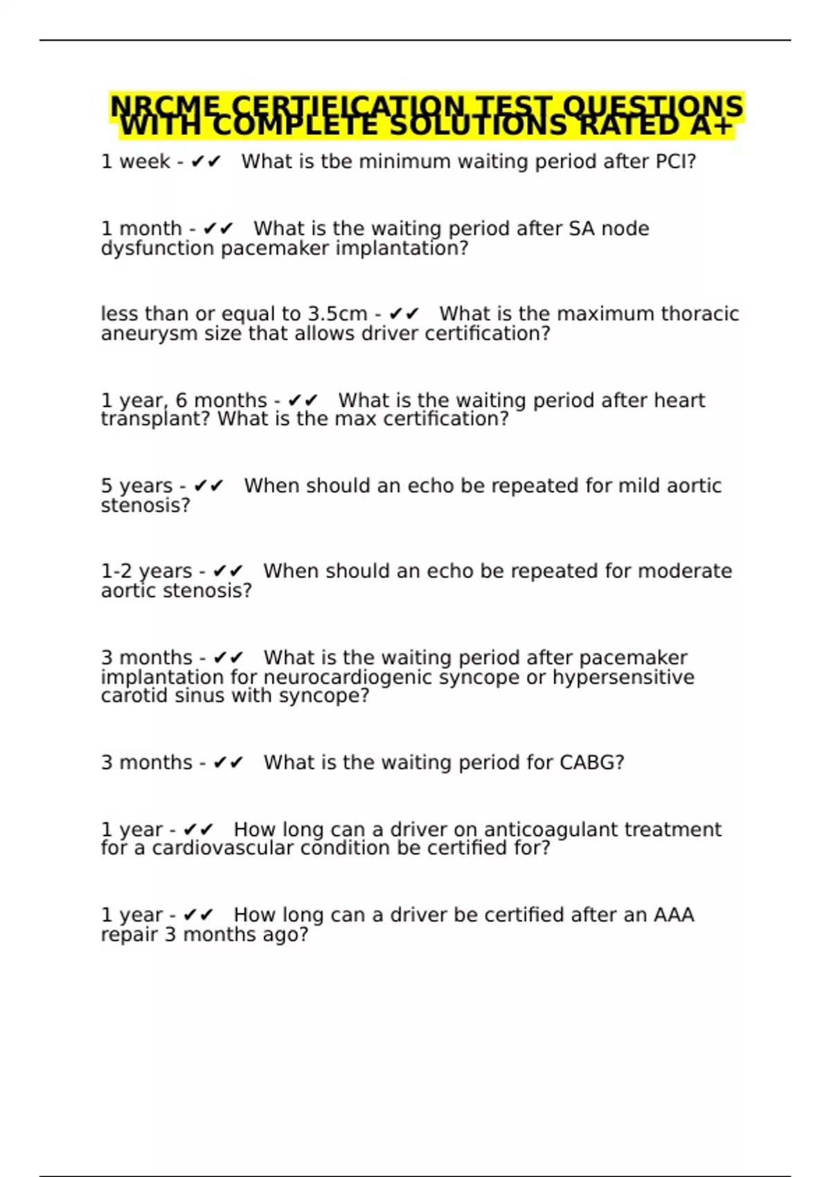 NRCME CERTIFICATION TEST QUESTIONS WITH COMPLETE SOLUTIONS RATED A+