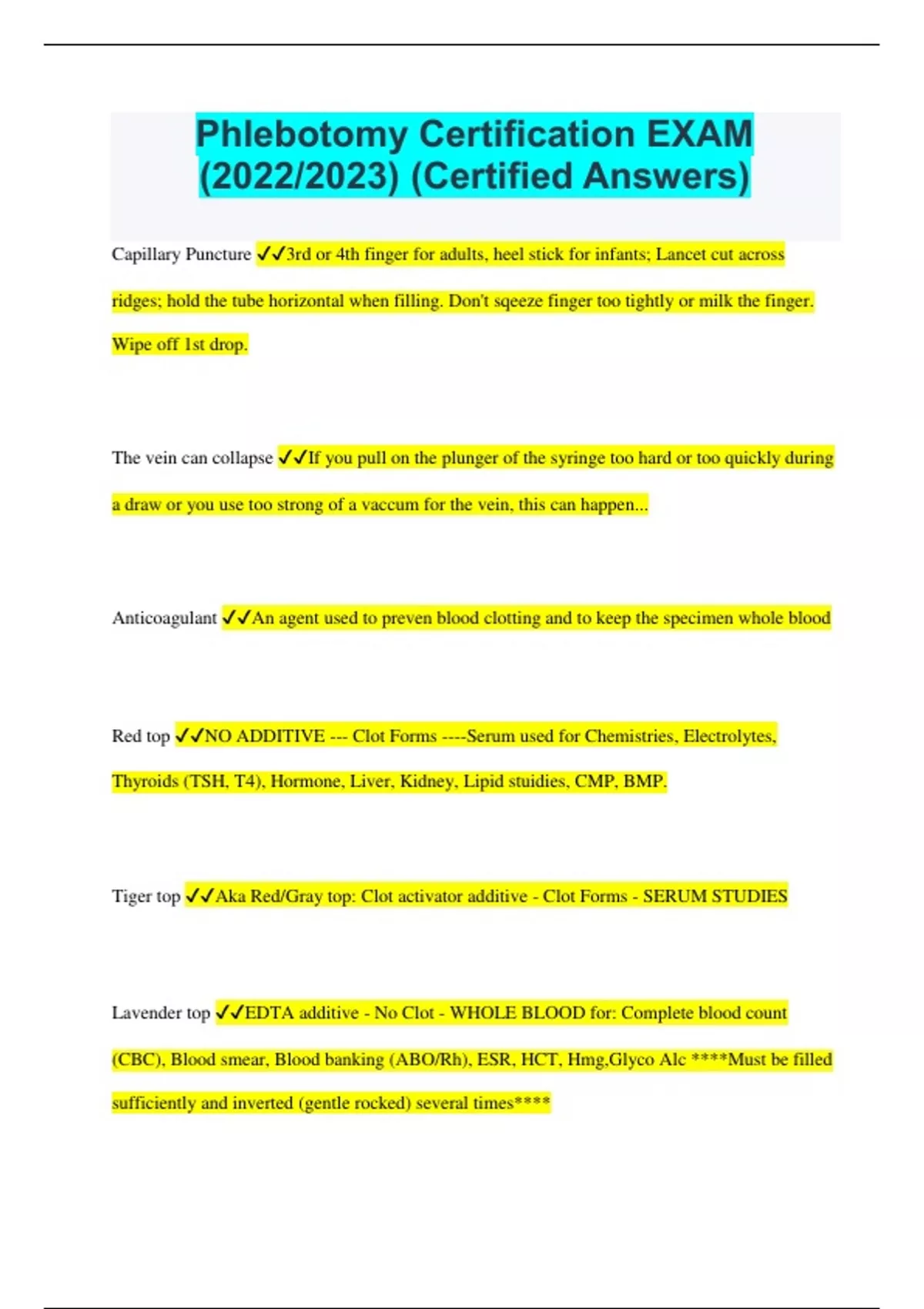 Phlebotomy Certification EXAM (2022/2023) (Certified Answers)