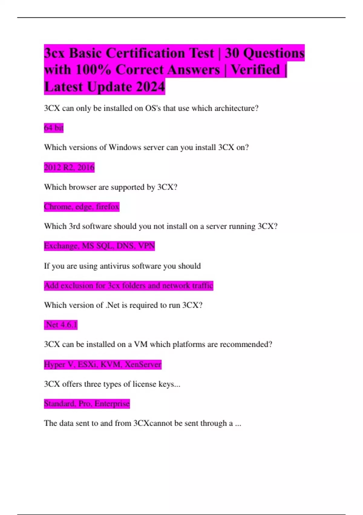 3cx Basic Certification Test | 30 Questions with 100% Correct Answers | Verified | Latest Update 2024