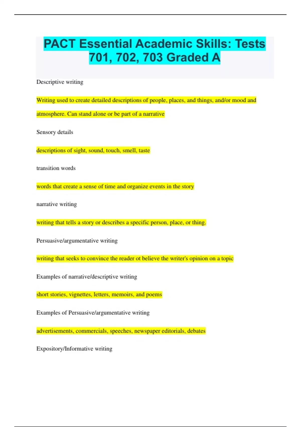 PACT Essential Academic Skills: Tests 701, 702, 703 Graded A
