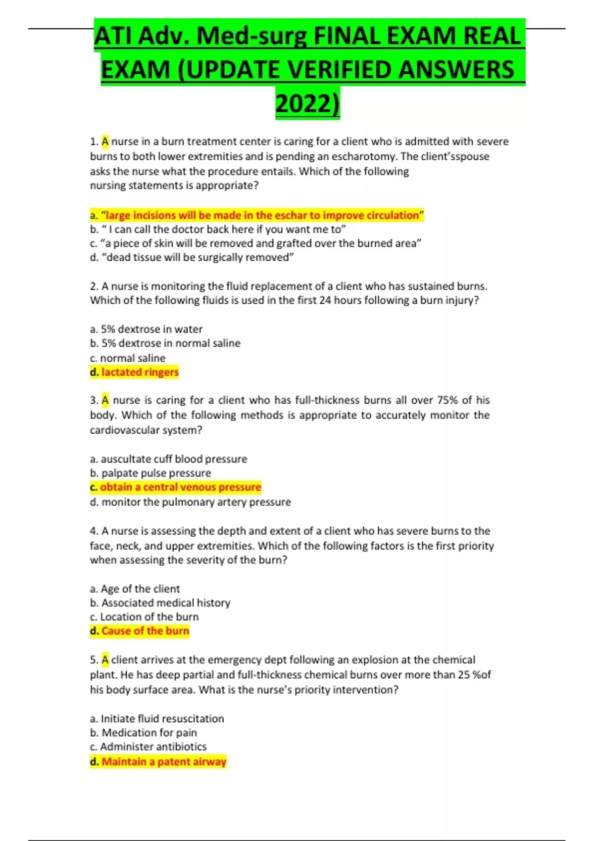 ATI Adv. Med-surg FINAL EXAM REAL EXAM (UPDATE VERIFIED ANSWERS 2022)