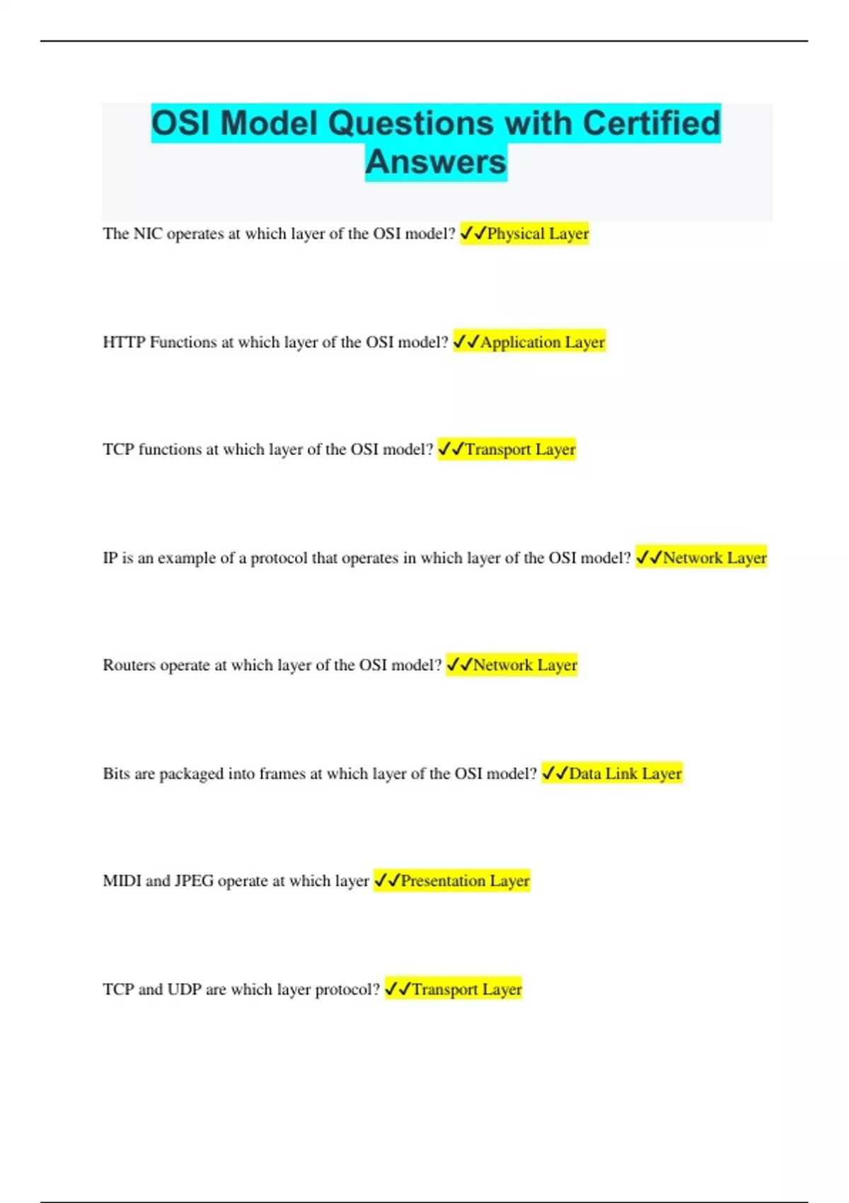 OSI Model Questions with Certified Answers