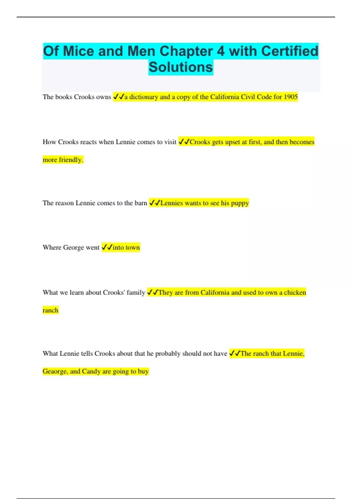 Of Mice and Men Chapter 4 with Certified Solutions