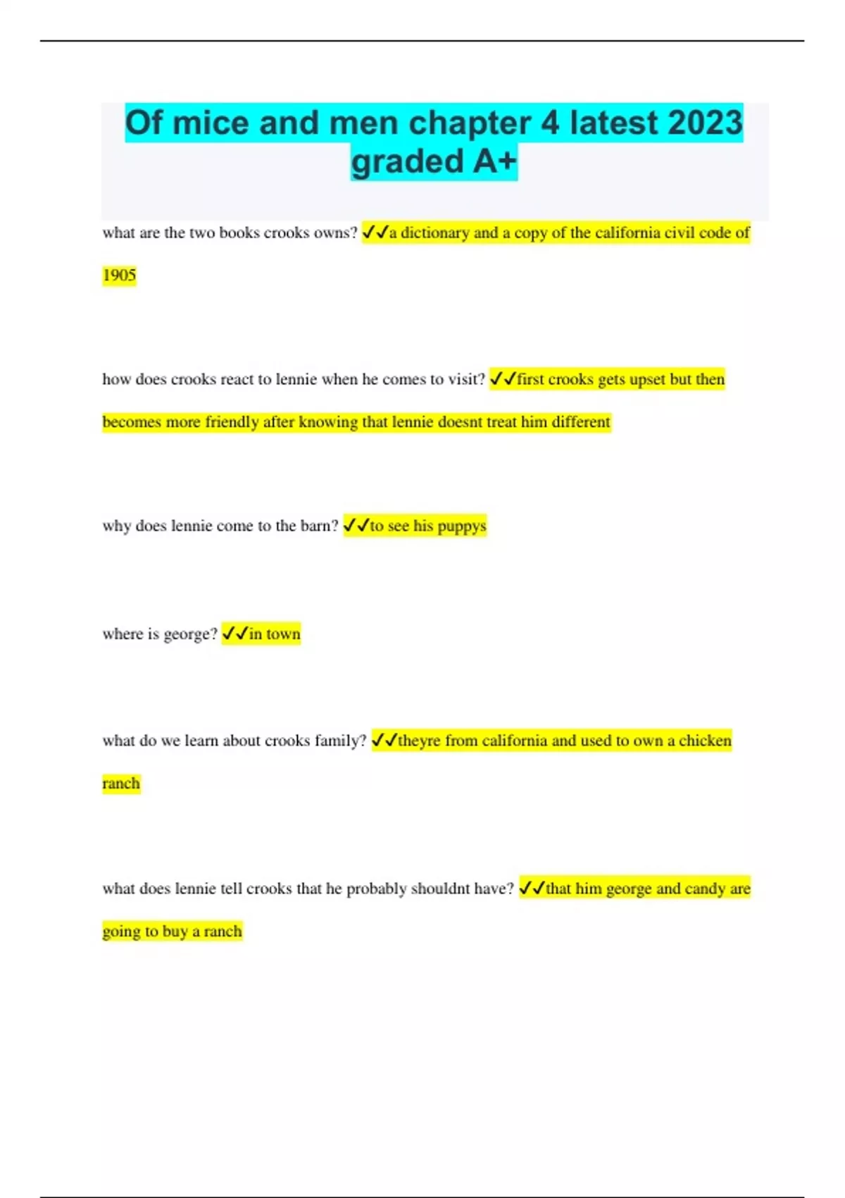 Of mice and men chapter 4 latest 2023 graded A+