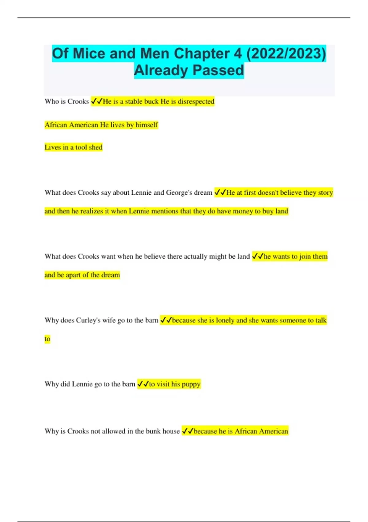 Of Mice and Men Chapter 4 (2022/2023) Already Passed