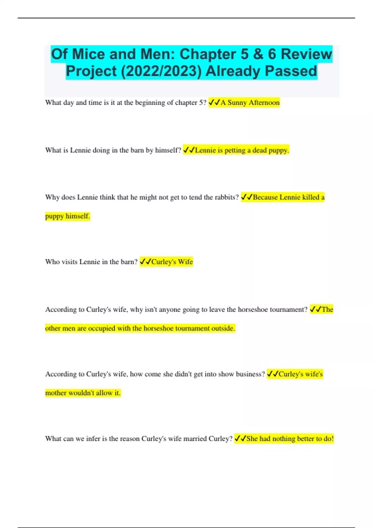 Of Mice and Men: Chapter 5 & 6 Review Project (2022/2023) Already Passed