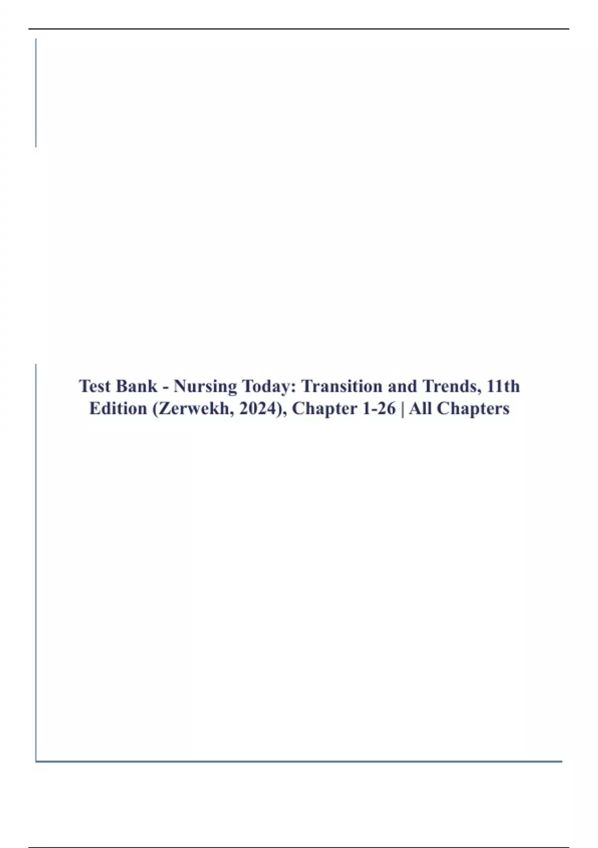 Test Bank - Nursing Today: Transition and Trends, 11th Edition (Zerwekh, 2024), Chapter 1-26 | All Chapters