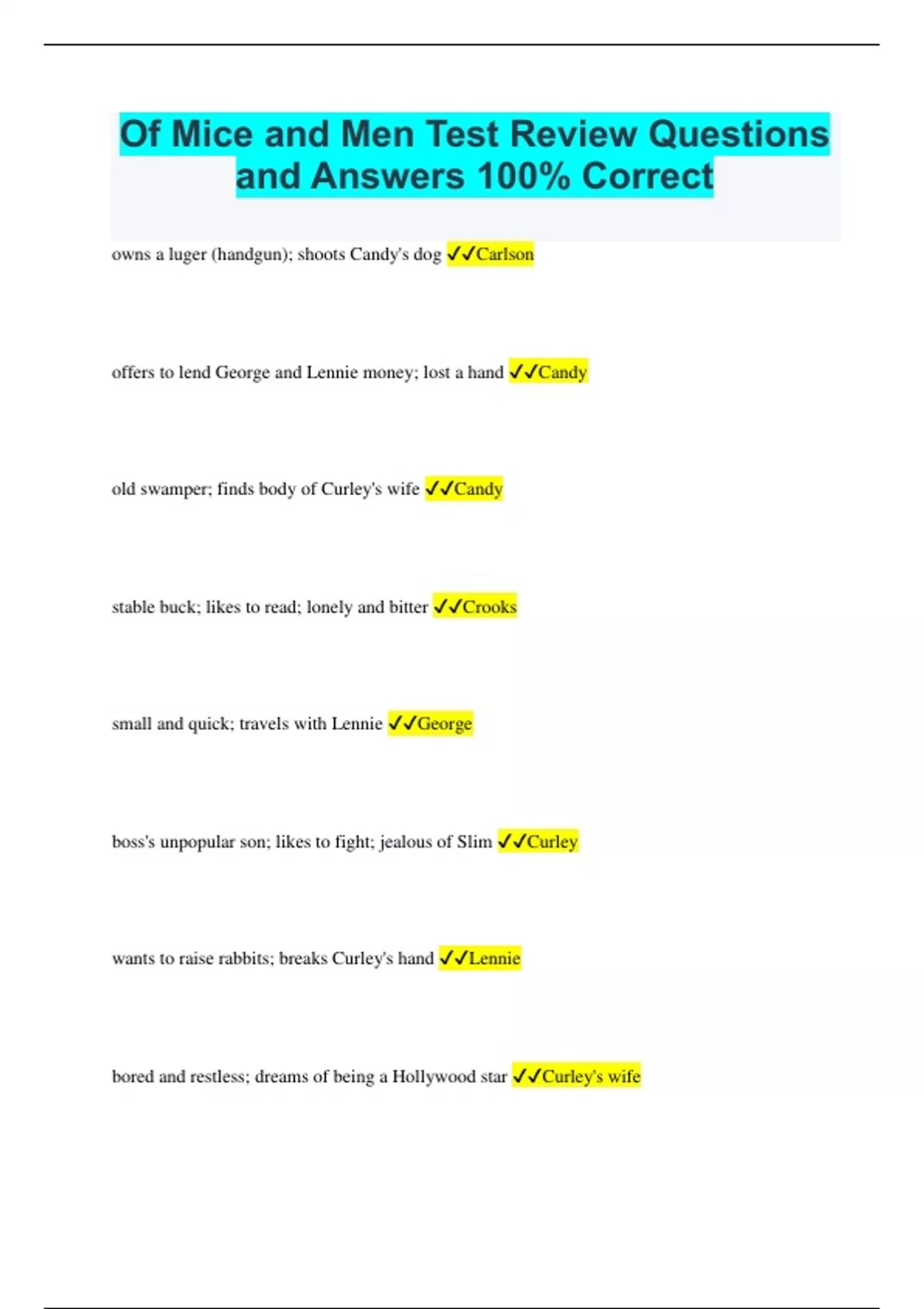 Of Mice and Men Test Review Questions and Answers 100% Correct
