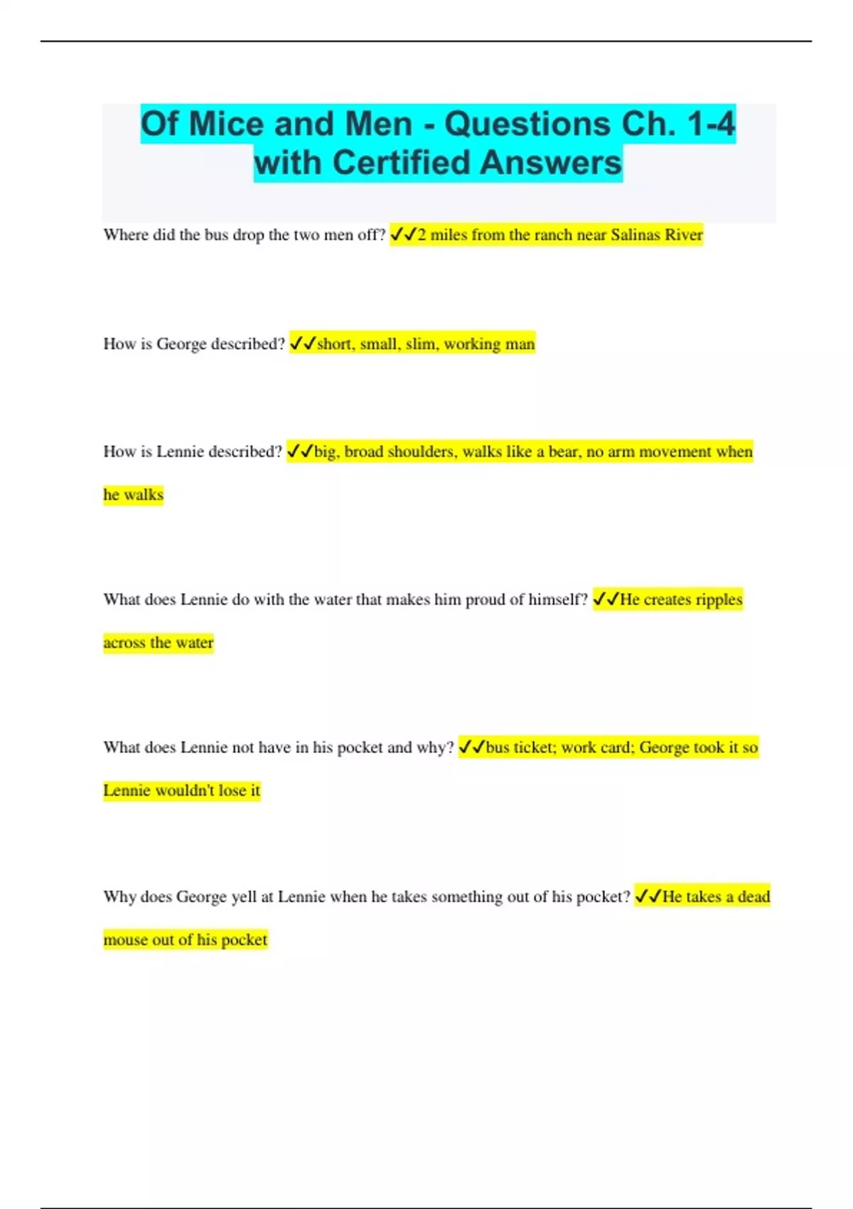 Of Mice and Men - Questions Ch. 1-4 with Certified Answers