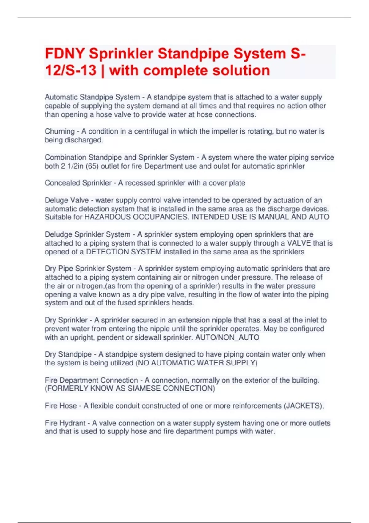 - FDNY Sprinkler Standpipe System S-12/S-13