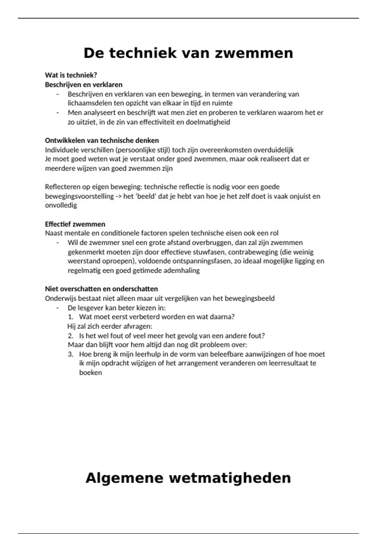 Zwemmen samenvatting, CALO 1e jaar, periode 2