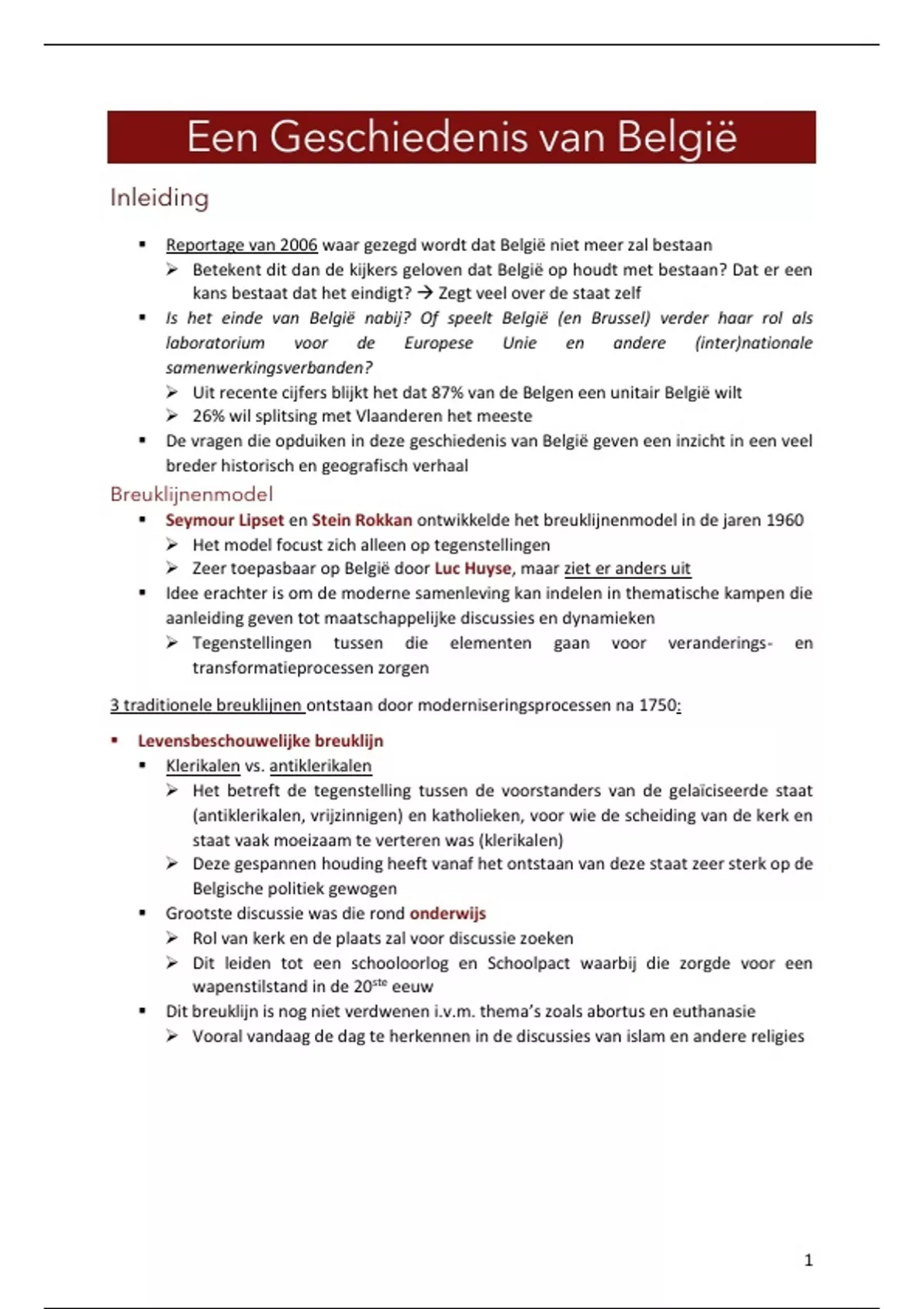 Samenvatting - Geschiedenis van belgië (1023228AEW)