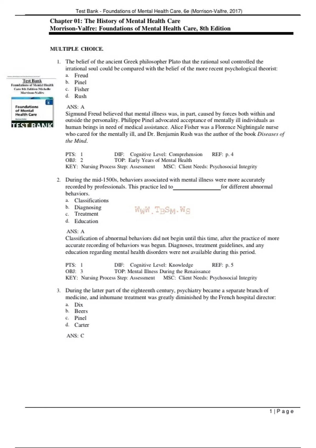 Test Bank For Foundations of Mental Health Care 8th Edition By Michelle Morrison-Valfre | | 9780323810296 | Chapter 1-33 | Complete Questions And Answers A+