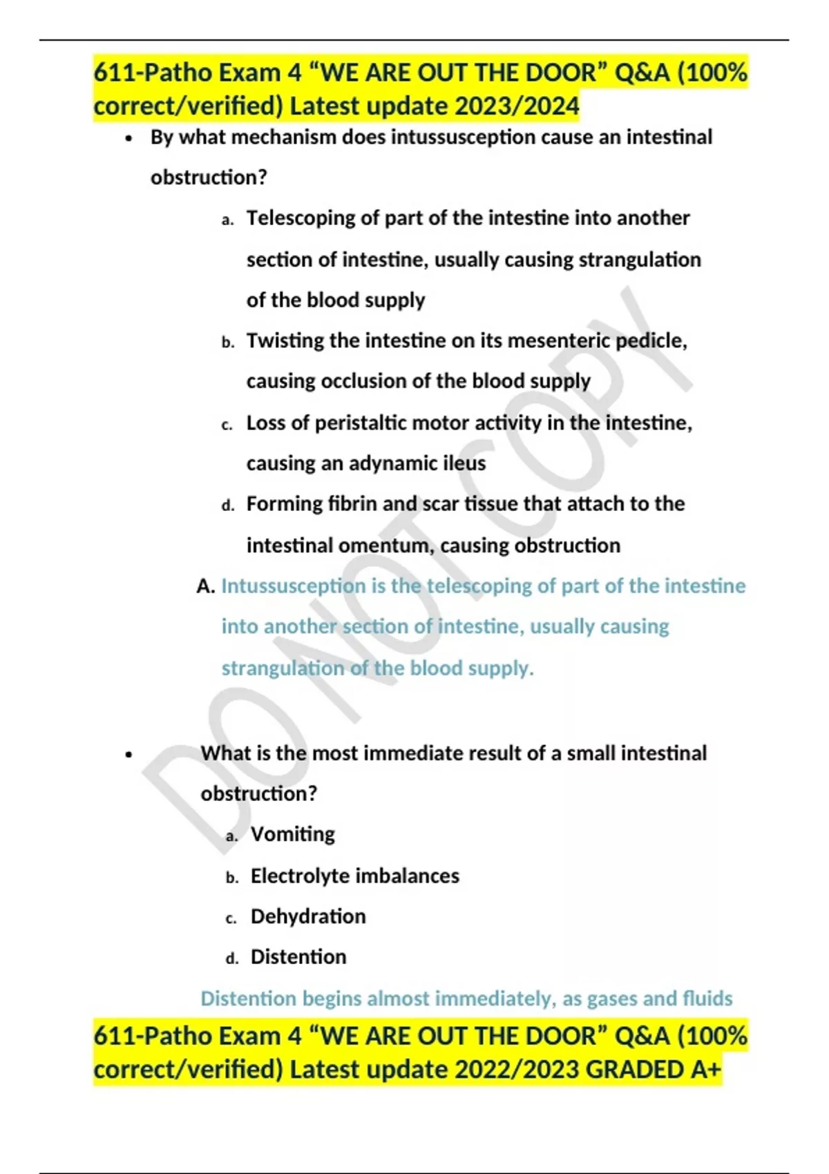 ,611-Patho Exam 4 “WE ARE OUT THE DOOR” Q&A (100%