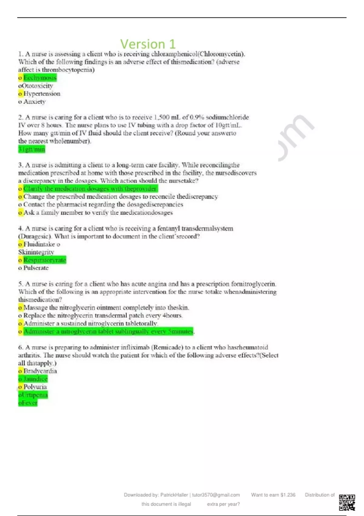 Latest Update 2024 ATI Pharmacology Proctored Exam 7 Versions Combined 100% Verified Questions Correct Answers
