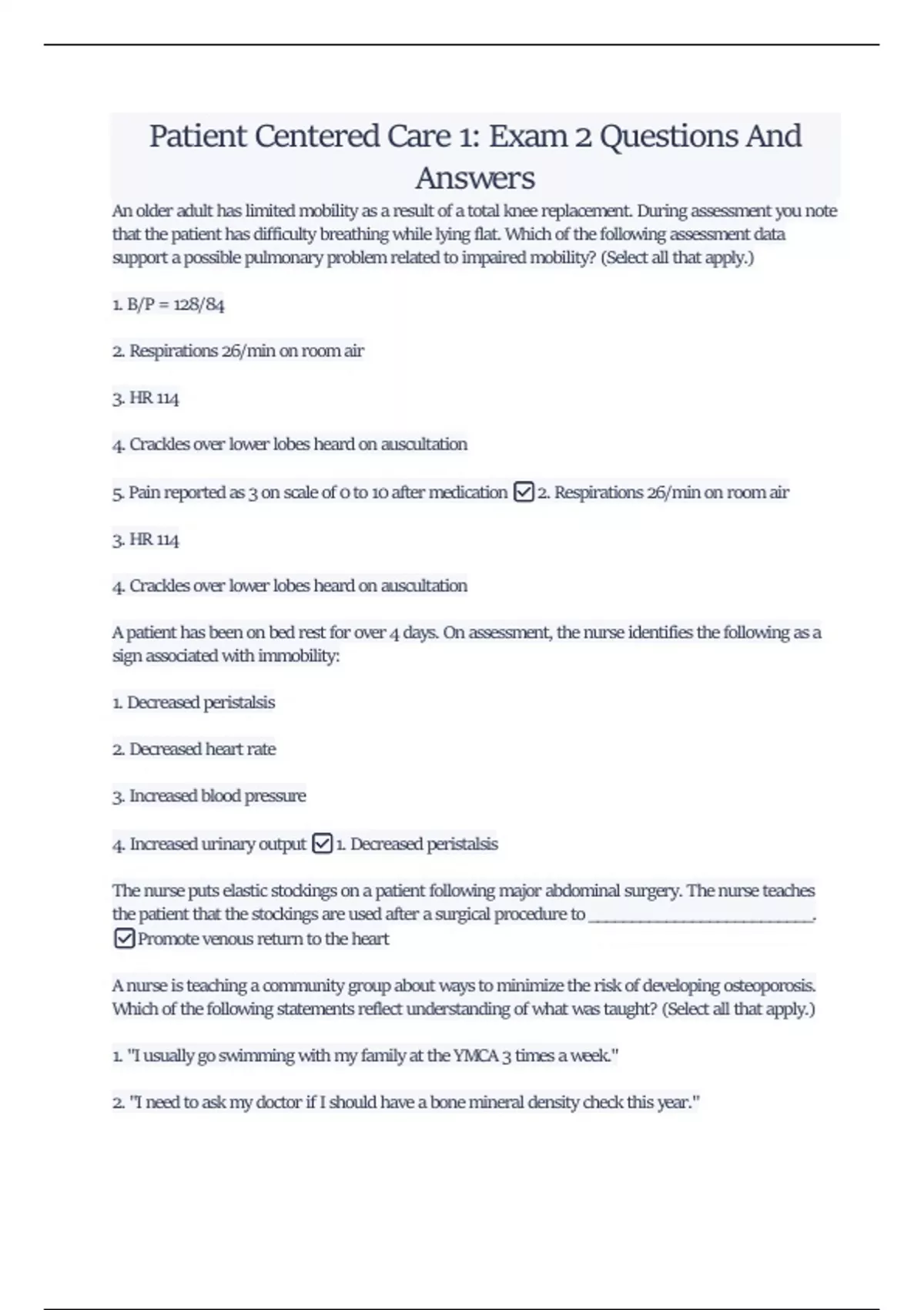 Patient Centered Care 1: Exam 2 Questions And Answers Verified Study Solutions Patient Centered Care 1: Exam 2 Questions And Answers Verified Study Solutions