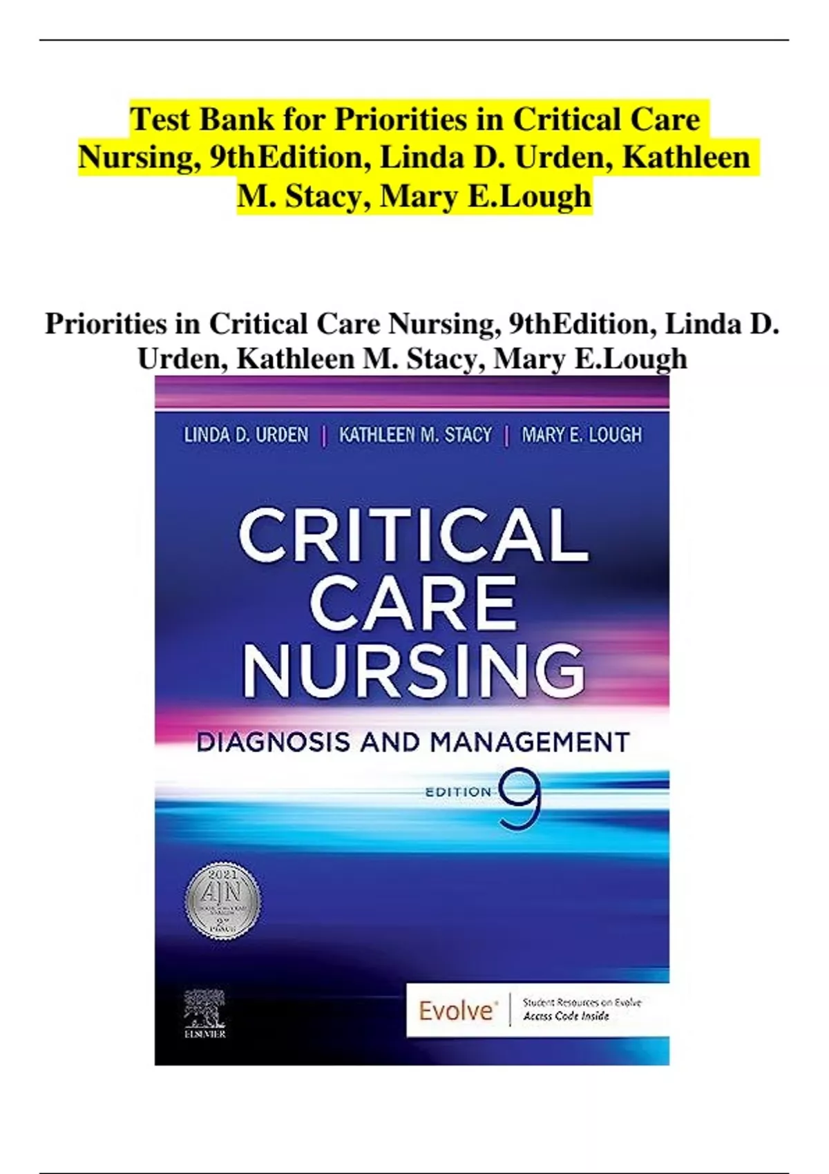 Test Bank for Priorities in Critical Care Nursing, 9th Edition, Linda D. Urden, Kathleen M. Stacy, Mary E. Lough pdf