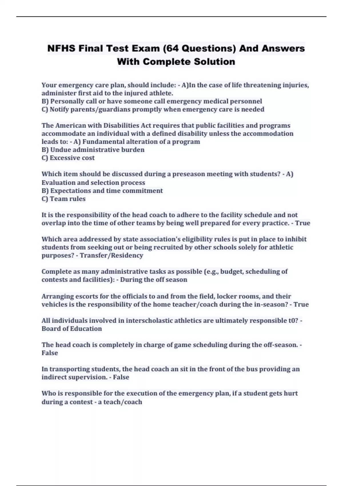 NFHS Final Test Exam (64 Questions) And Answers With Complete Solution