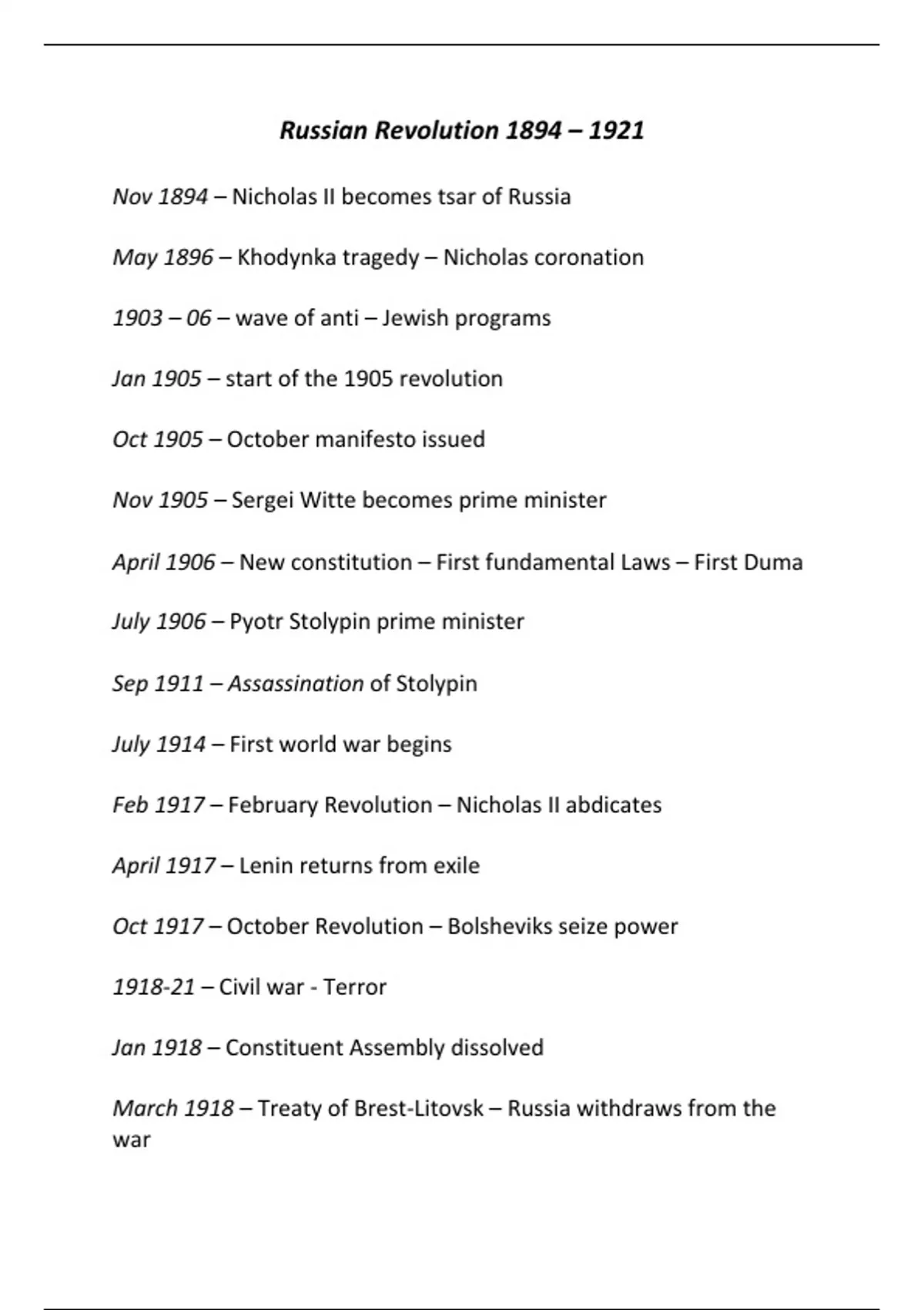 Nov 1894 – Nicholas II becomes tsar of Russia