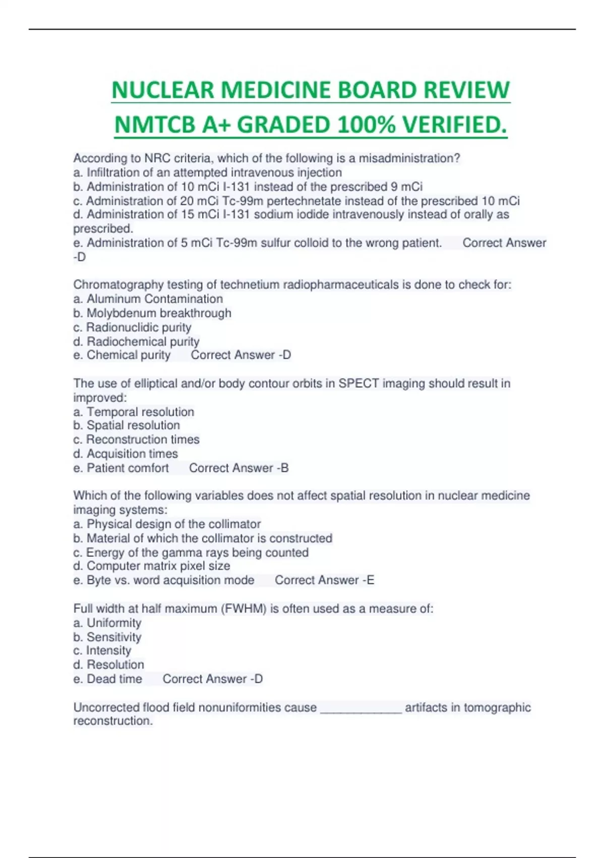 NUCLEAR MEDICINE BOARD REVIEW NMTCB A+ GRADED 100% VERIFIED.