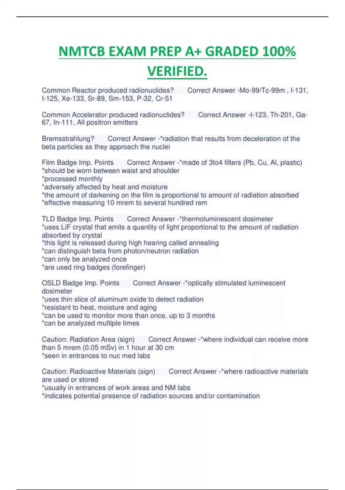 NMTCB EXAM PREP A+ GRADED 100% VERIFIED.