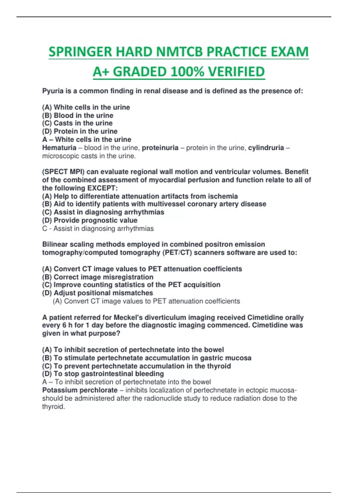 SPRINGER HARD NMTCB PRACTICE EXAM A+ GRADED 100% VERIFIED