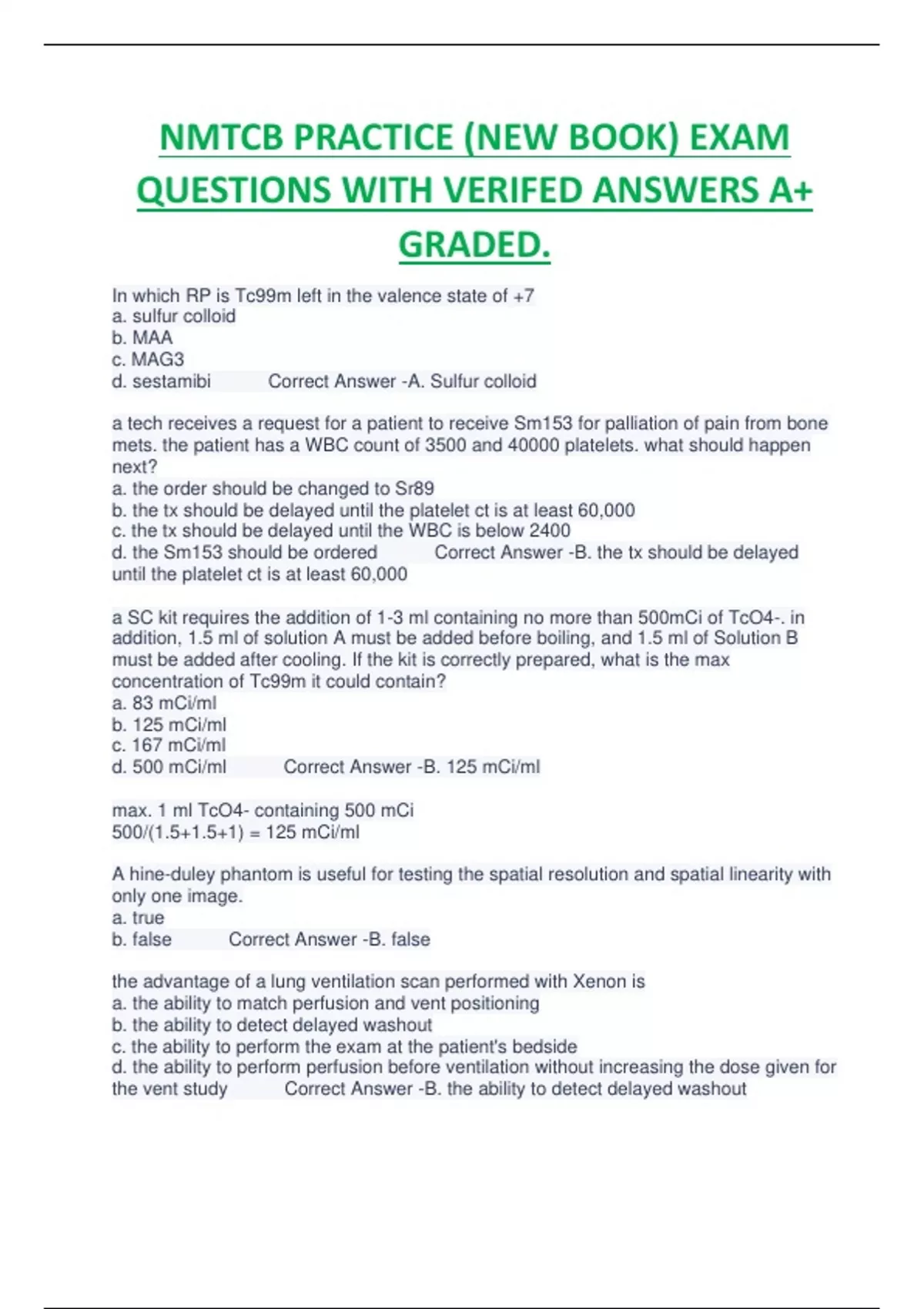 NMTCB PRACTICE (NEW BOOK) EXAM QUESTIONS WITH VERIFED ANSWERS A+ GRADED.NMTCB PRACTICE (NEW BOOK) EXAM QUESTIONS WITH VERIFED ANSWERS A+ GRADED.NMTCB PRACTICE (NEW BOOK) EXAM QUESTIONS WITH VERIFED ANSWERS A+ GRADED.NMTCB PRACTICE (NEW BOOK) EXAM QUESTIONS WITH VERIFED ANSWERS A+ GRADED.NMTCB PRACTICE (NEW BOOK) EXAM QUESTIONS WITH VERIFED ANSWERS A+ GRADED.NMTCB PRACTICE (NEW BOOK) EXAM QUESTIONS WITH VERIFED ANSWERS A+ GRADED.NMTCB PRACTICE (NEW BOOK) EXAM QUESTIONS WITH VERIFED ANSWERS A+ GRADED.NMTCB PRACTICE (NEW BOOK) EXAM QUESTIONS WITH VERIFED ANSWERS A+ GRADED.NMTCB PRACTICE (NEW BOOK) EXAM QUESTIONS WITH VERIFED ANSWERS A+ GRADED.NMTCB PRACTICE (NEW BOOK) EXAM QUESTIONS WITH VERIFED ANSWERS A+ GRADED.