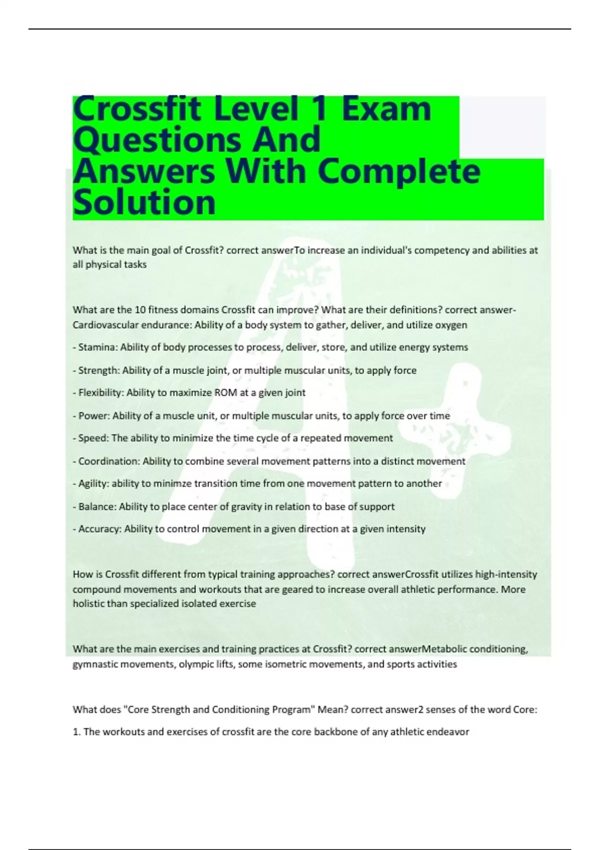 Crossfit Level 1 Exam Questions And Answers With Complete Solution What is the main goal of Crossfit?