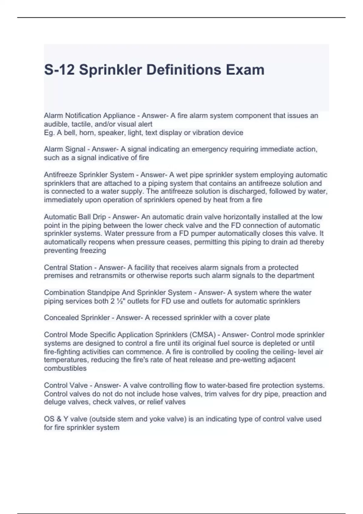 S-12 Sprinkler Definitions Exam