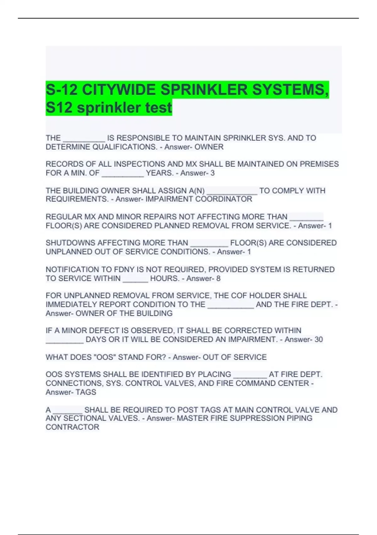 CITYWIDE SPRINKLER SYSTEMS/FDNY Sprinkler Exam Bundle