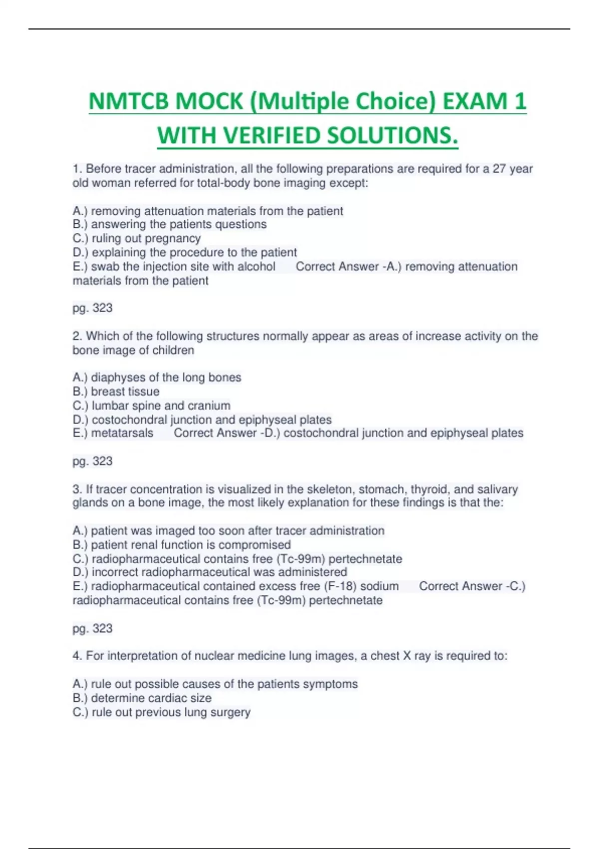 NMTCB MOCK (Multiple Choice) EXAM 1 WITH VERIFIED SOLUTIONS.