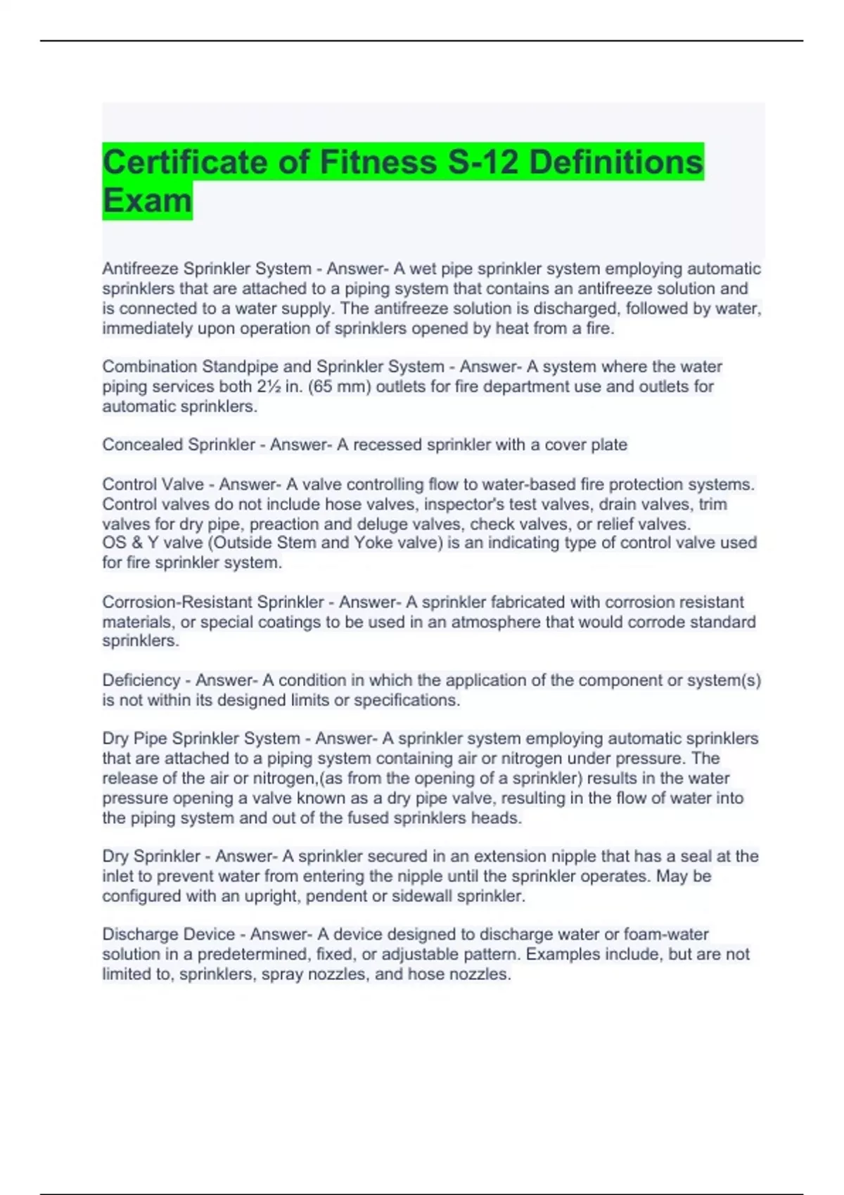 Certificate of Fitness S-12 Definitions Exam Questions and Answer