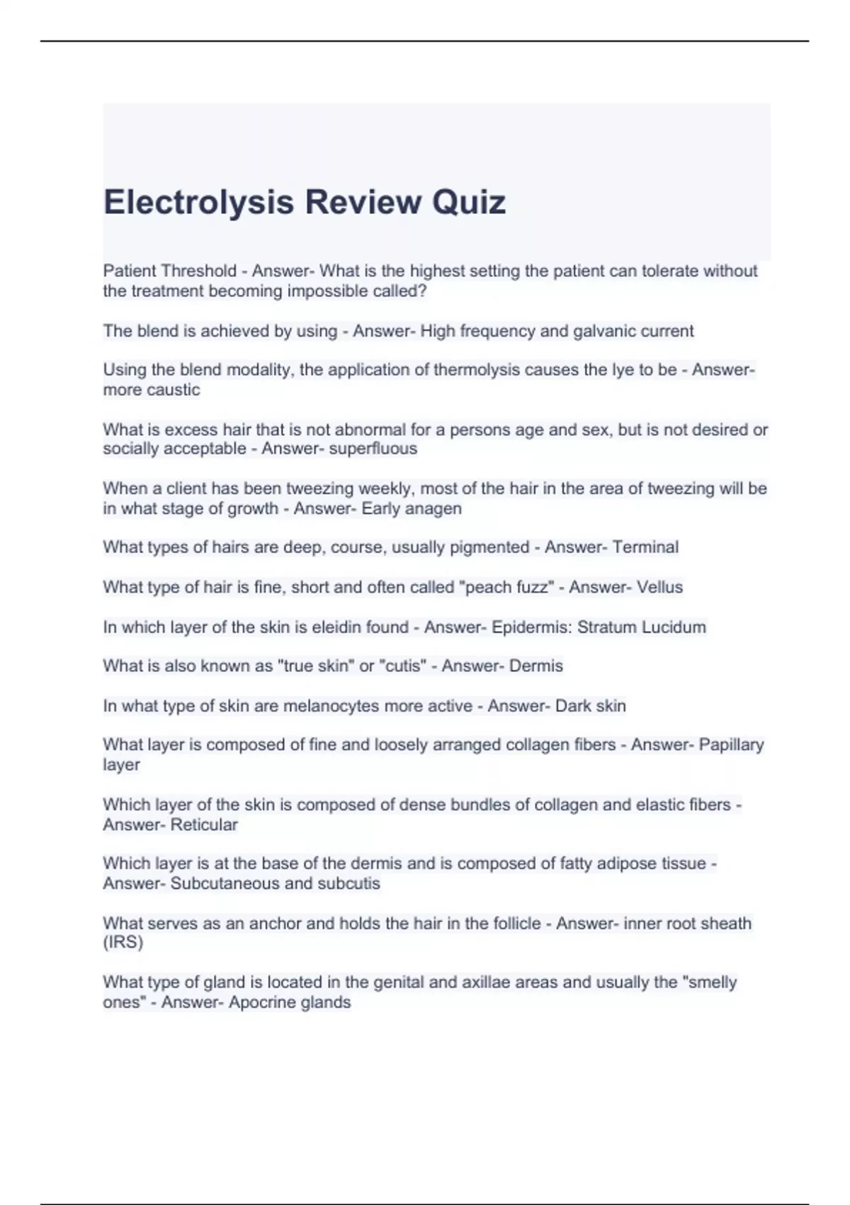 Electrolysis Exam Bundle