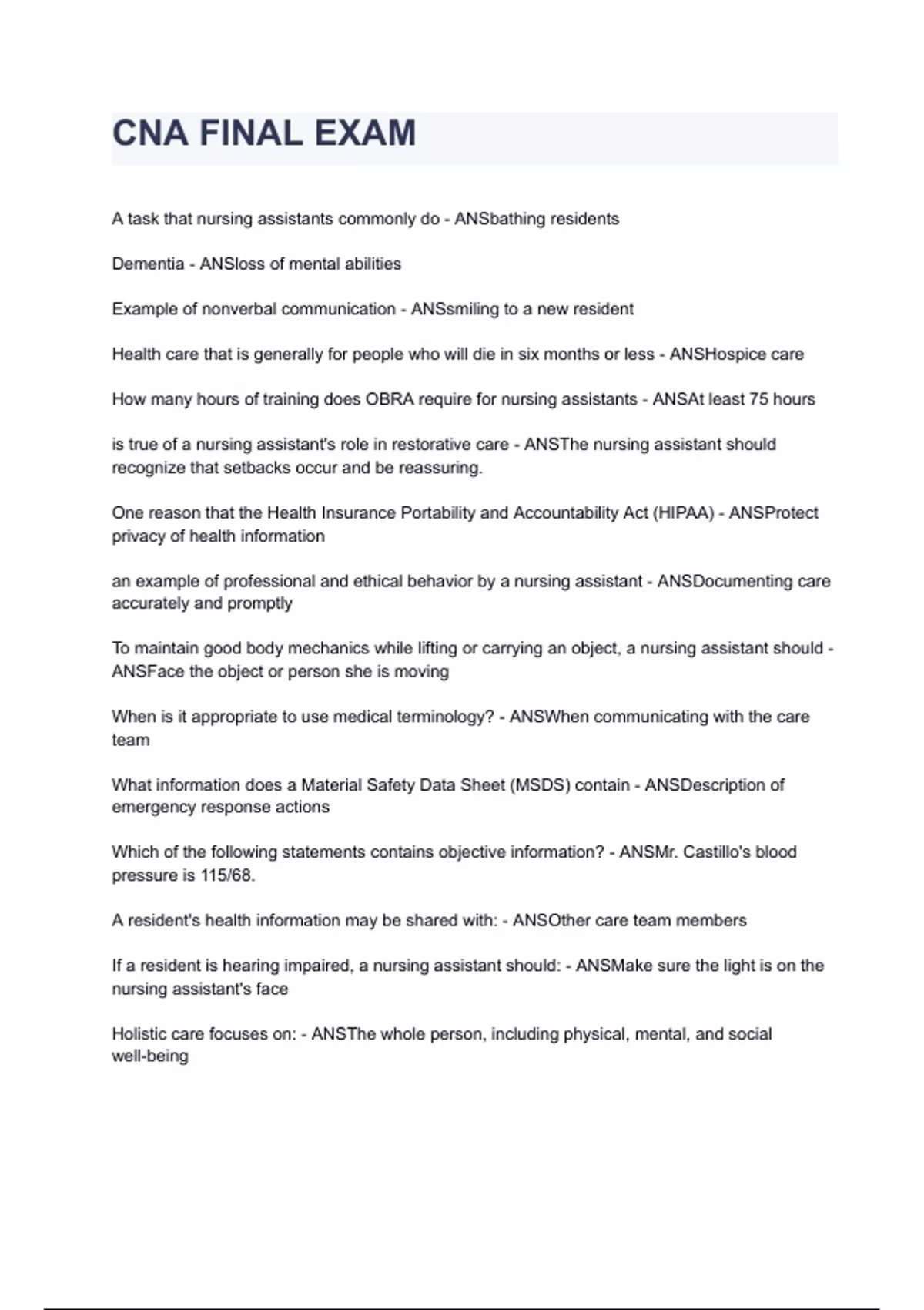 A task that nursing assistants commonly do - ANSbathing residents
