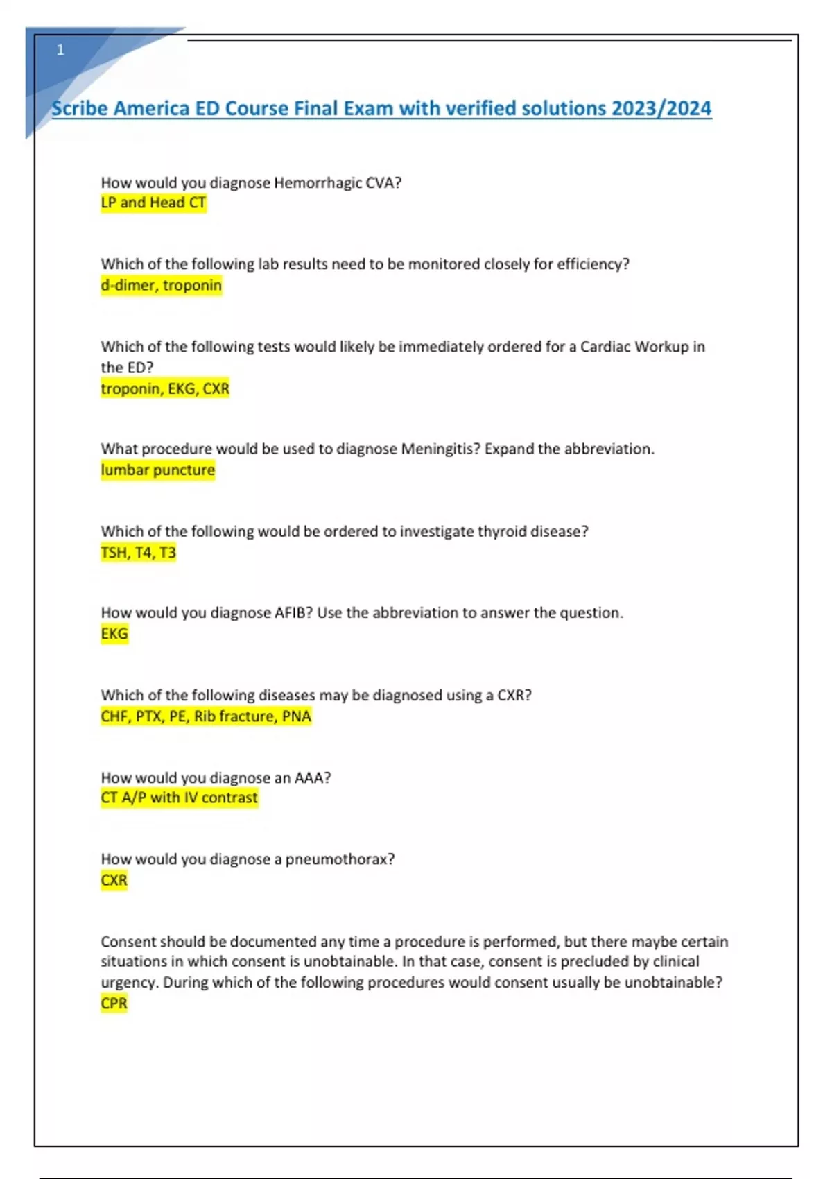 Scribe America ED Course Final Exam with verified solutions 2023/2024